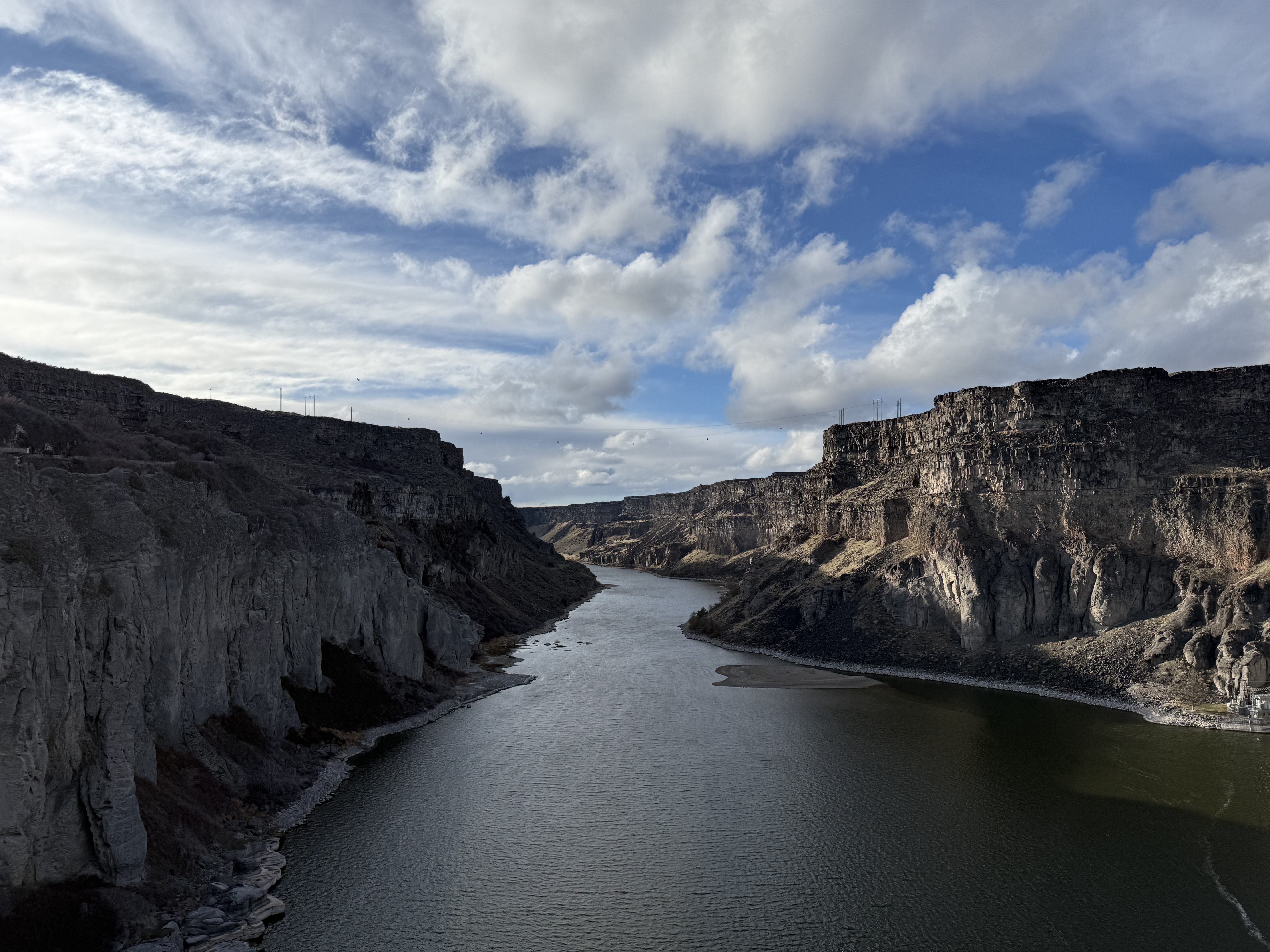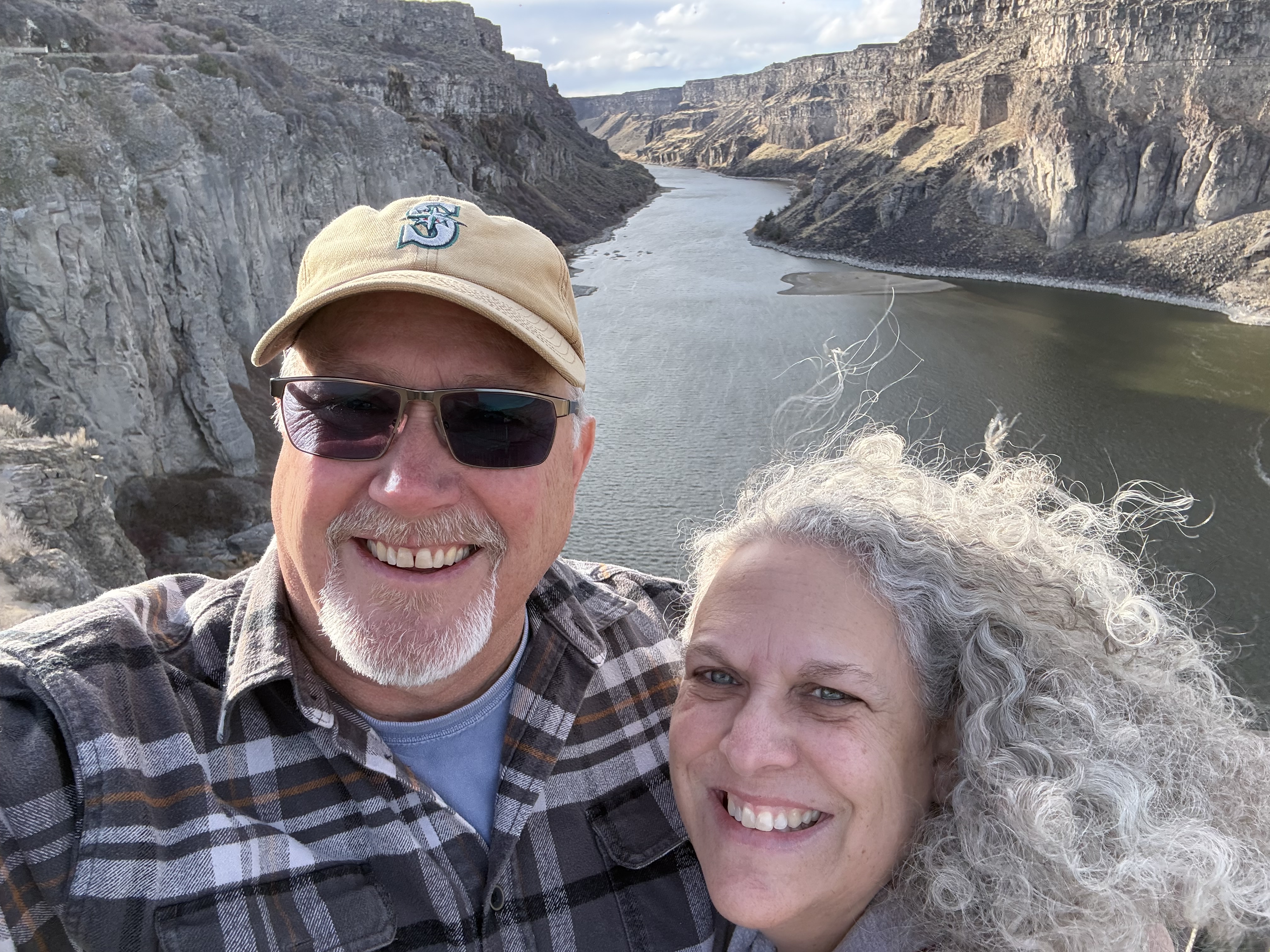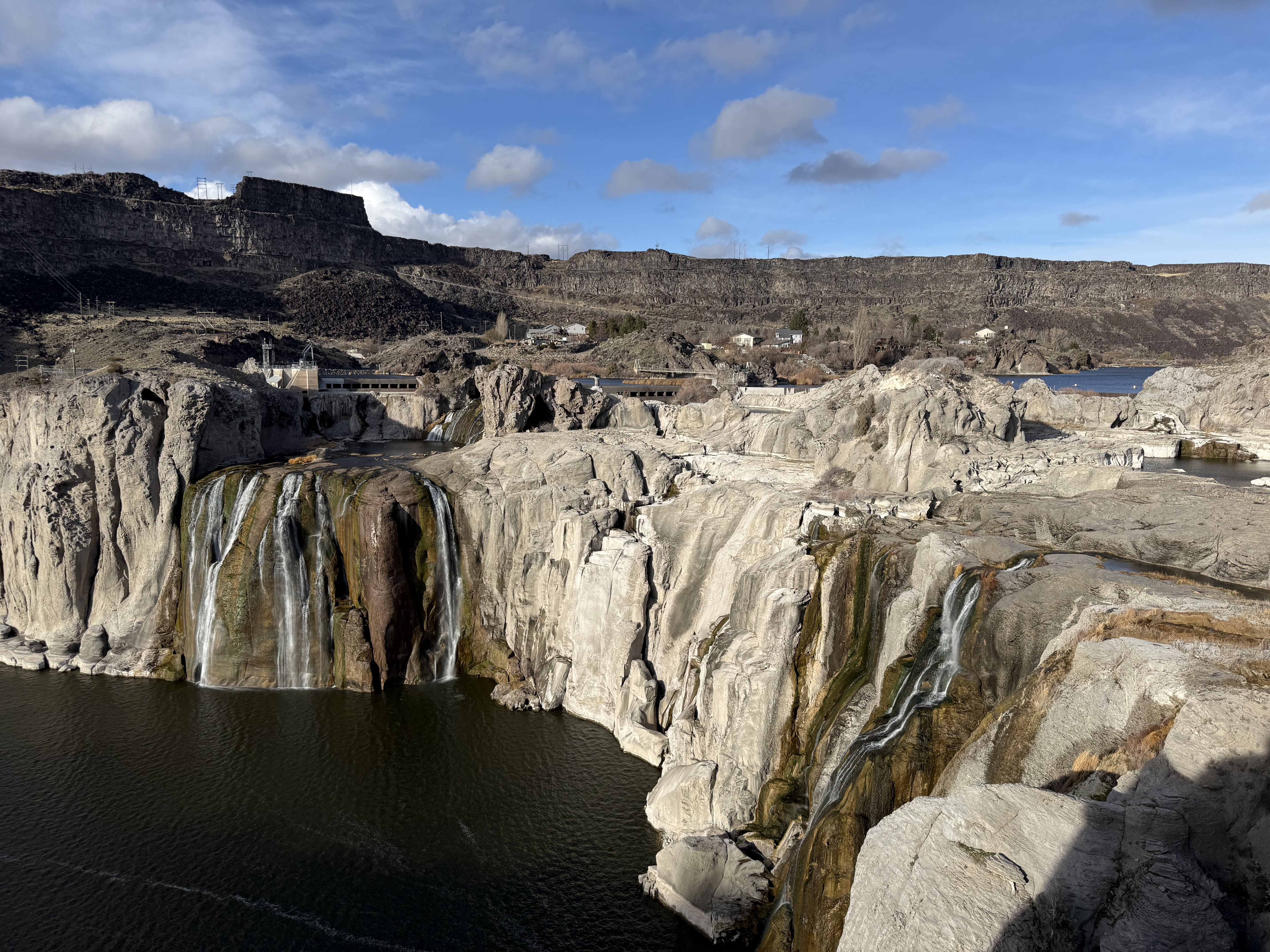 We reached Twin Falls at about 4:00, and after checking into the hotel, we decided to visit nearby Shoshone Falls, which is billed as the “Niagara of the West.” Even though this is not the right time of the year to see it in all it’s glory. It was still an impressive sight! Seeing the entire dry face of the falls was incredible and we will definitely make the stop again if we’re in the area during either the spring or early summer run off, as it’s easy to imagine how impressive it would be! Because this is a state park, there is a $5 per car fee, however it was not being collected today due to it being the off season, I’m guessing. The falls are a short maybe 15 minutes detour from the interstate. This is also very close to the location where the daredevil of our childhoods, Evel Knievel, made his ‘skycycle’ jump over the Snake River!