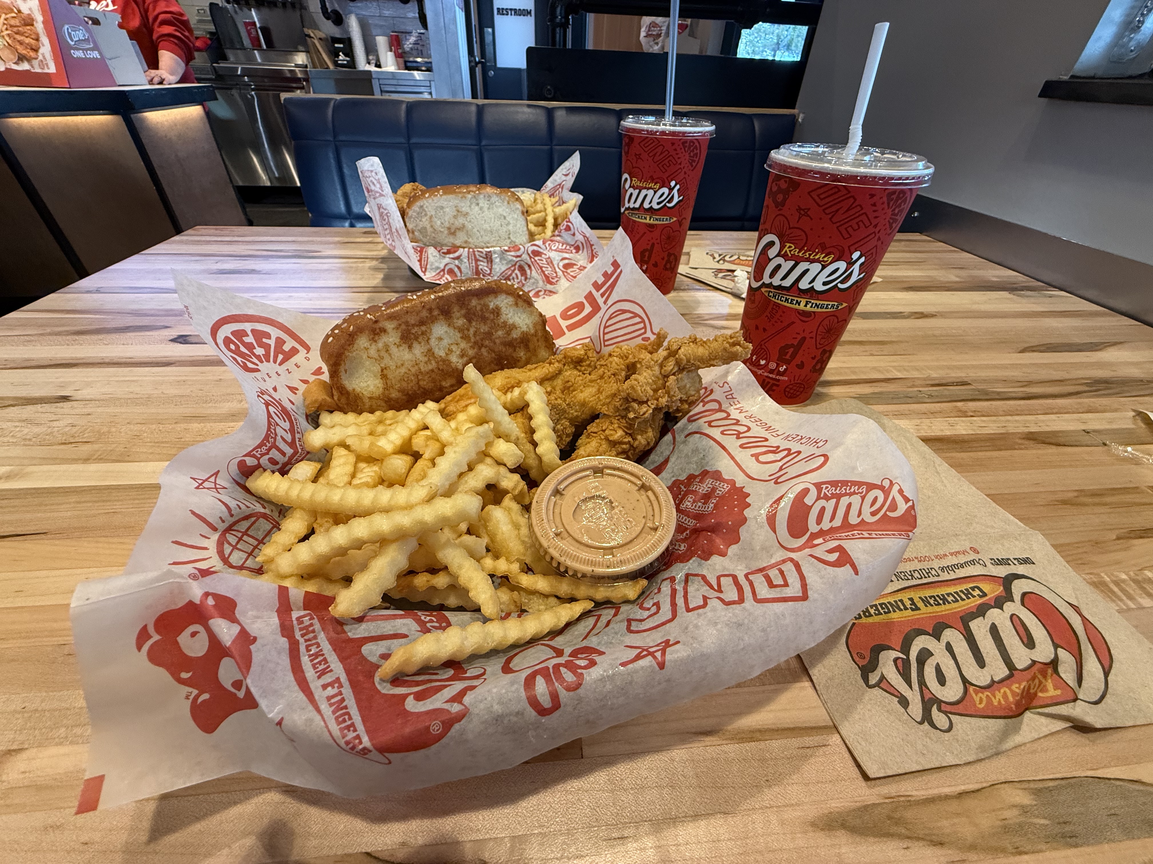 Dinner was a quick stop at Raising Cane’s. The Cane’s Sauce is one of our favorites, so anytime we’re near one of these restaurants, we are sure to stop.