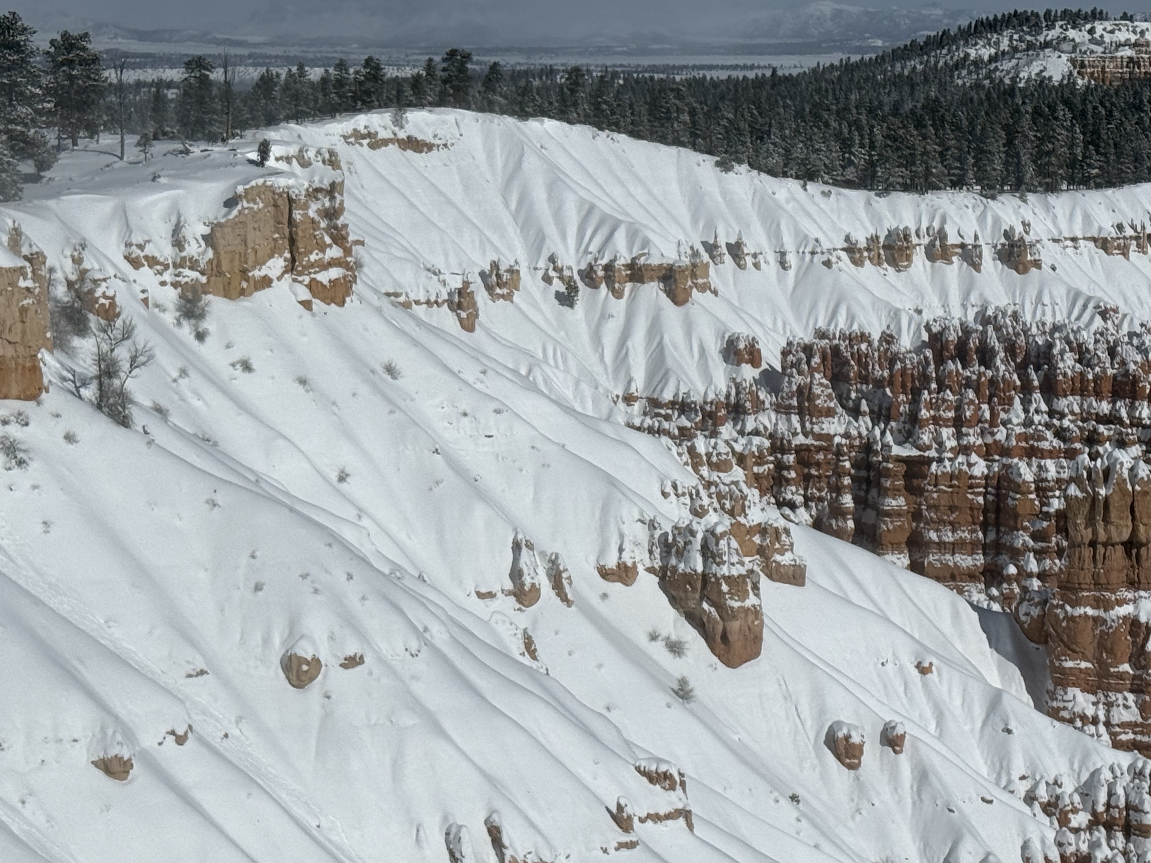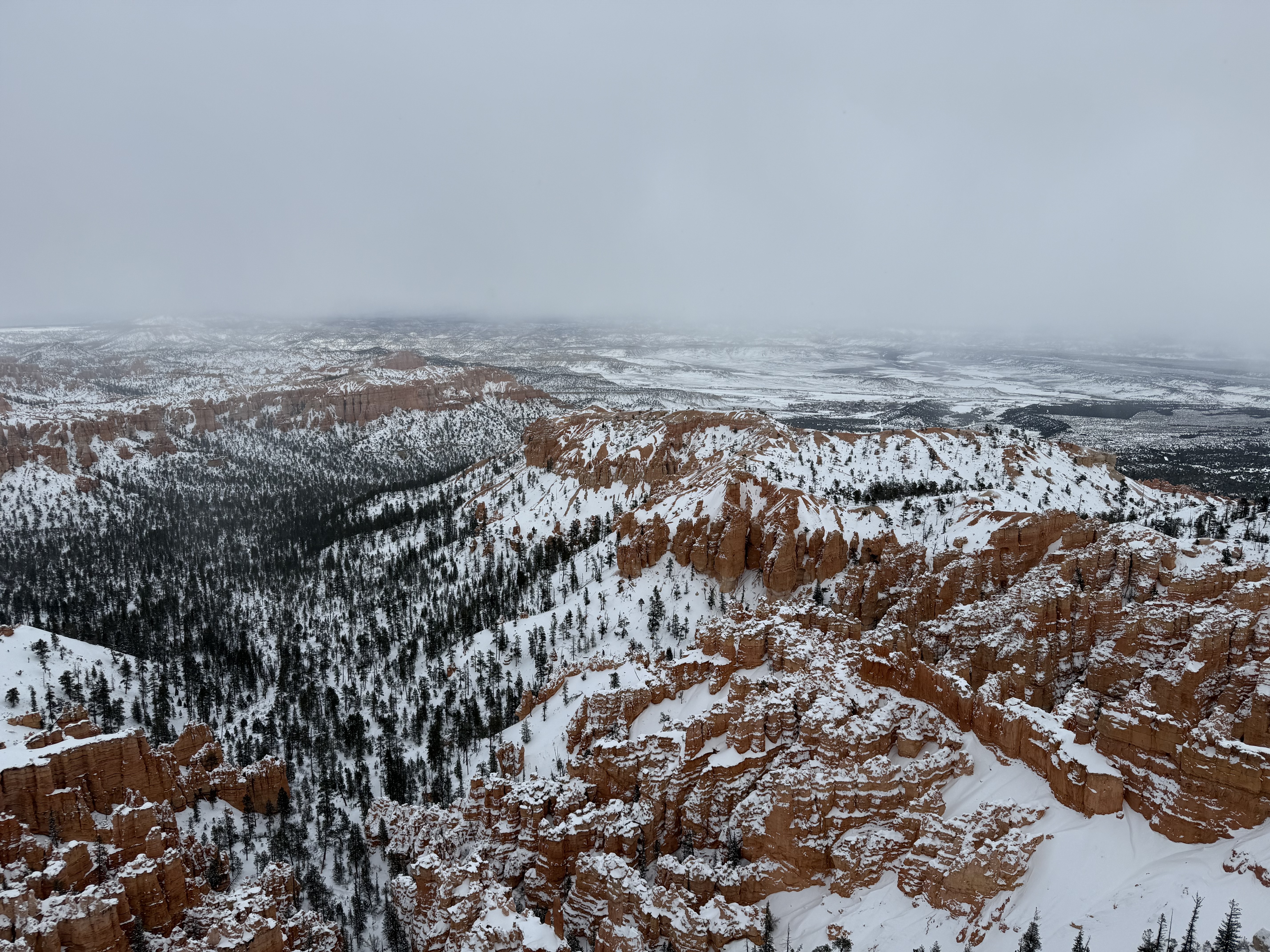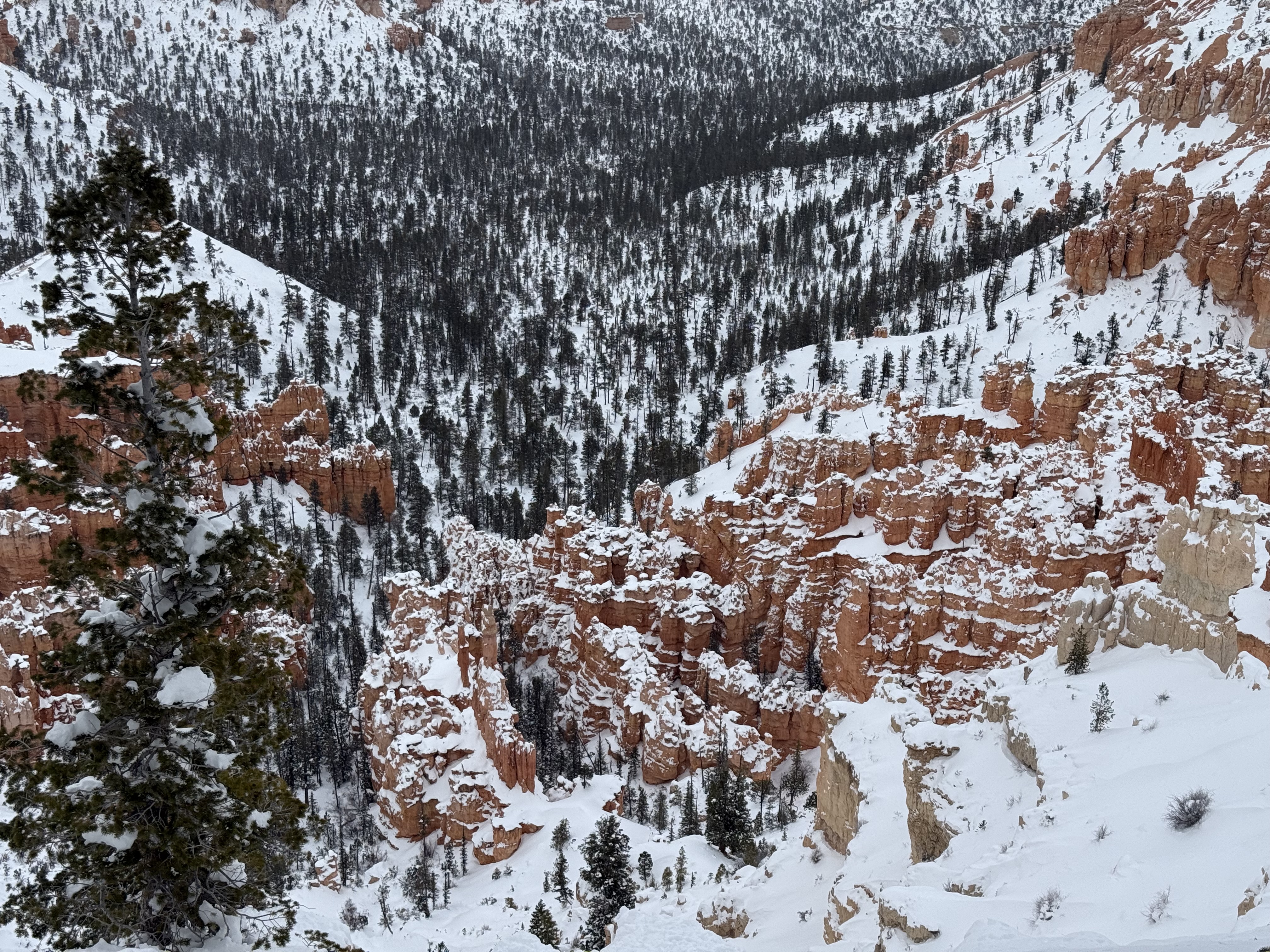 By about 5:30, it was starting to get dark, and was beginning to snow, so we returned to the hotel to check in. After settling in, we decided to grab a pizza from The Pizza Place located nearby in Tropic, UT. The BBQ chicken pizza was great! By the time we were done, it was snowing hard, and was beginning to accumulate, but we made the 12 mile drive back to the hotel without incident.