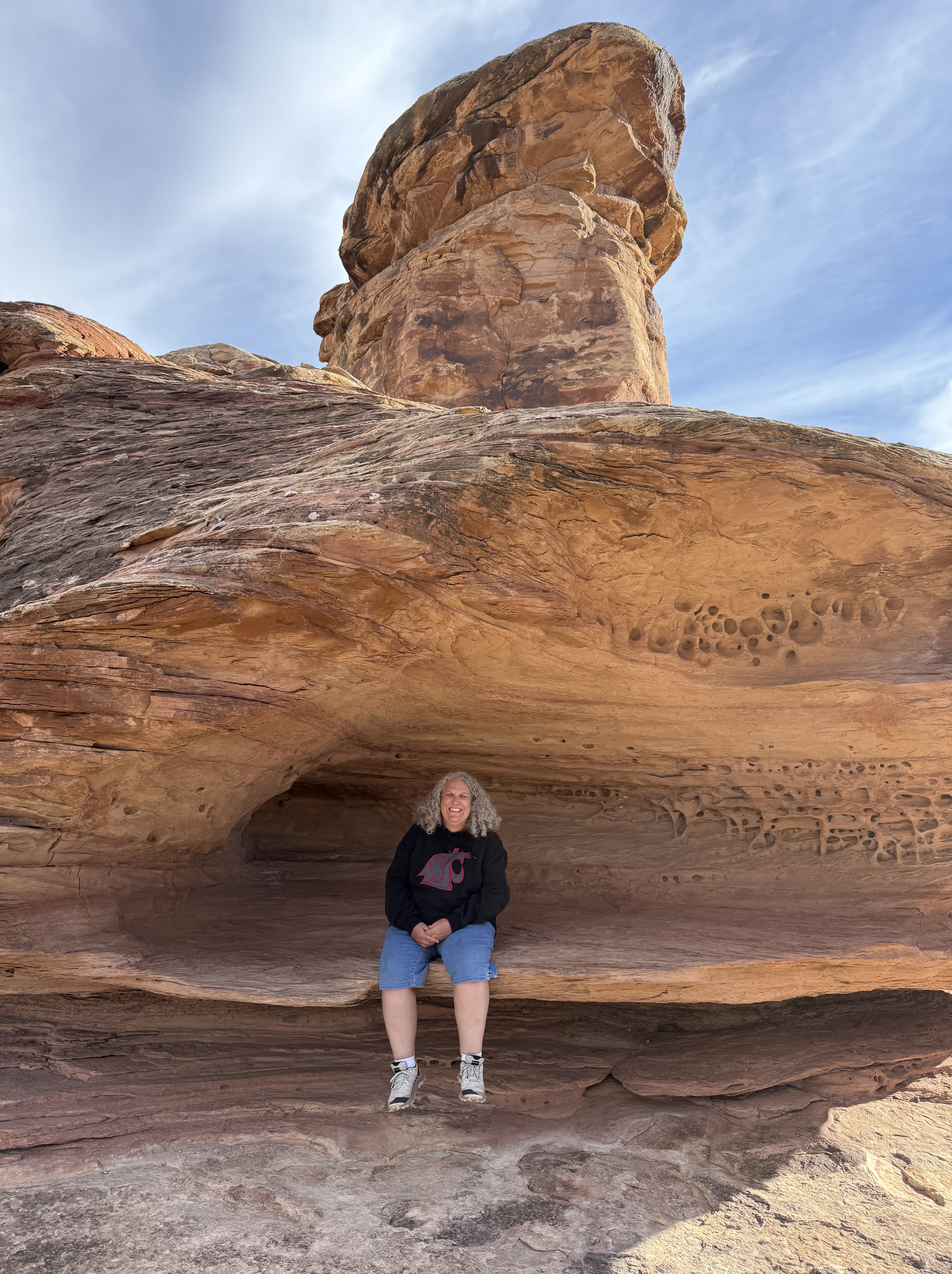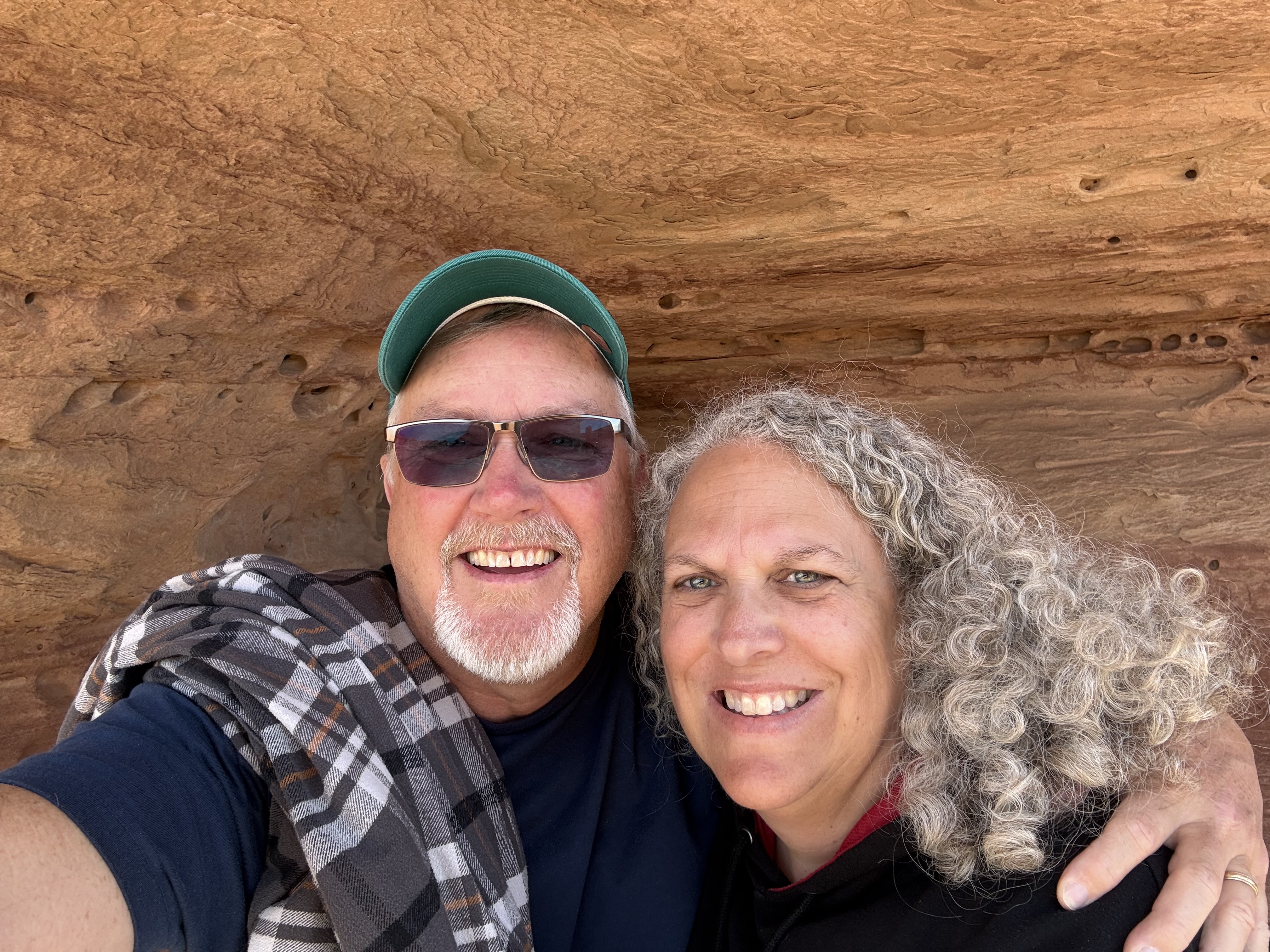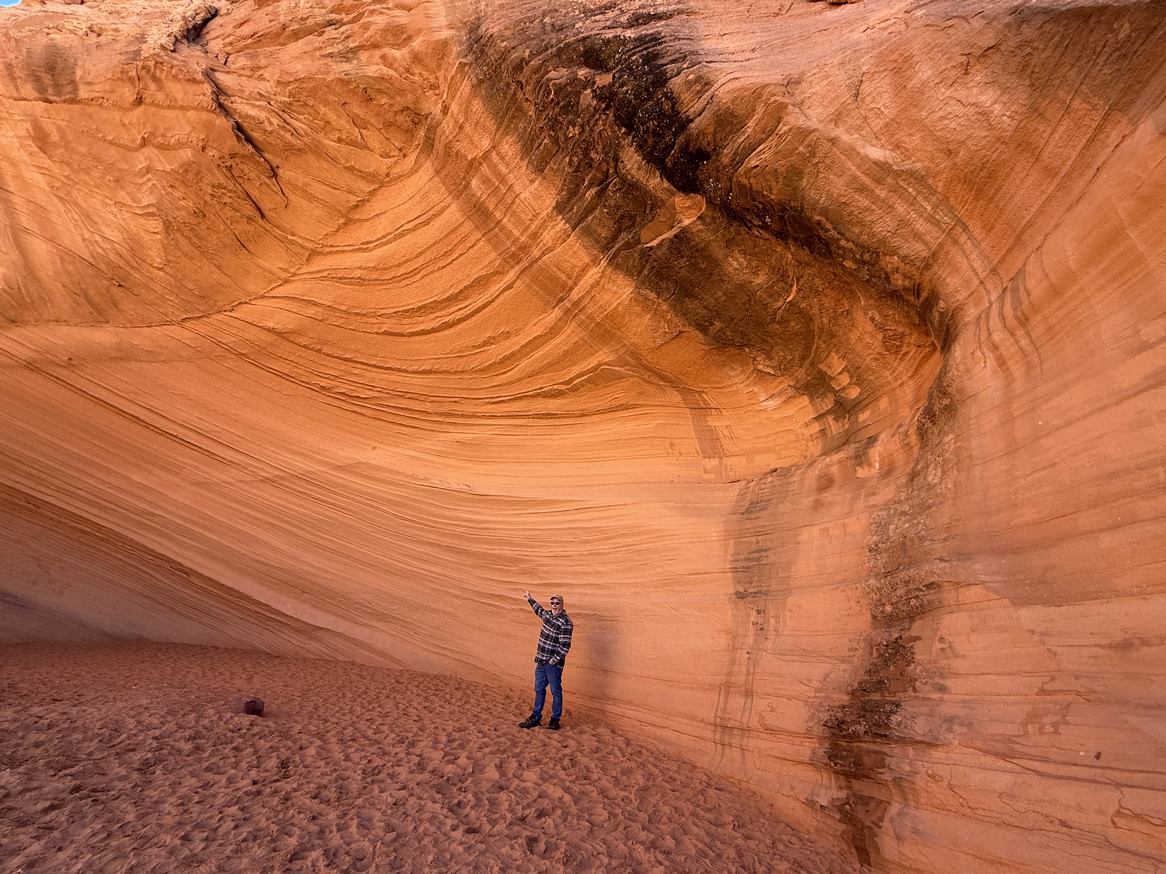 We made an extended stop in Page, AZ. There was an overlook just outside of town with sweeping views of the Glen Canyon. There was a very vocal, and huge, raven hanging out near the gazebo, It was making sounds unlike the ravens we have at home; kind of a clucking sound. We stopped at the Shell gas station, which is immediately adjacent to an area with a natural amphitheater and a arch/cave area. It’s an easy hike up to the cave and around to the amphitheater, and makes for some fun photos.