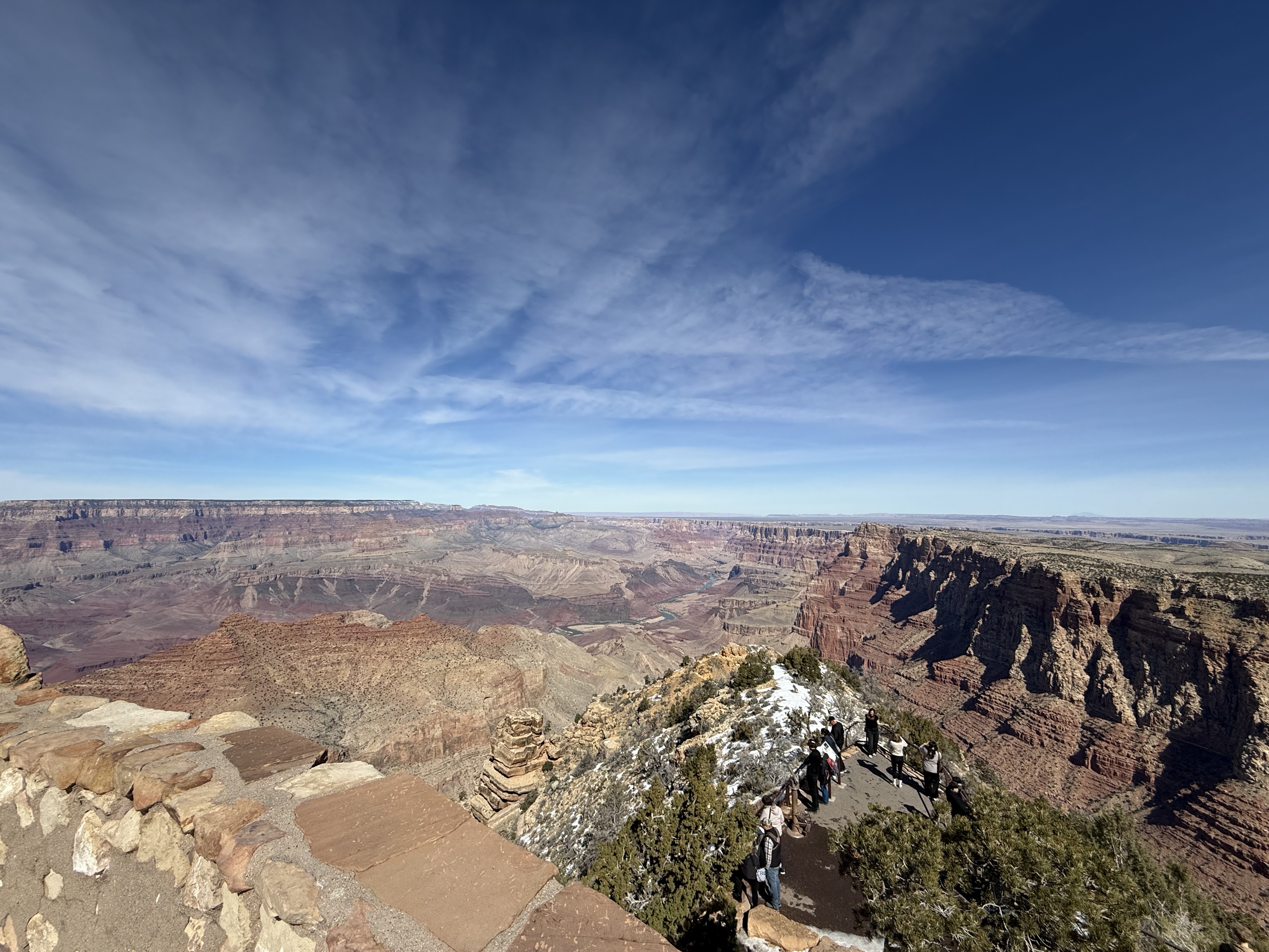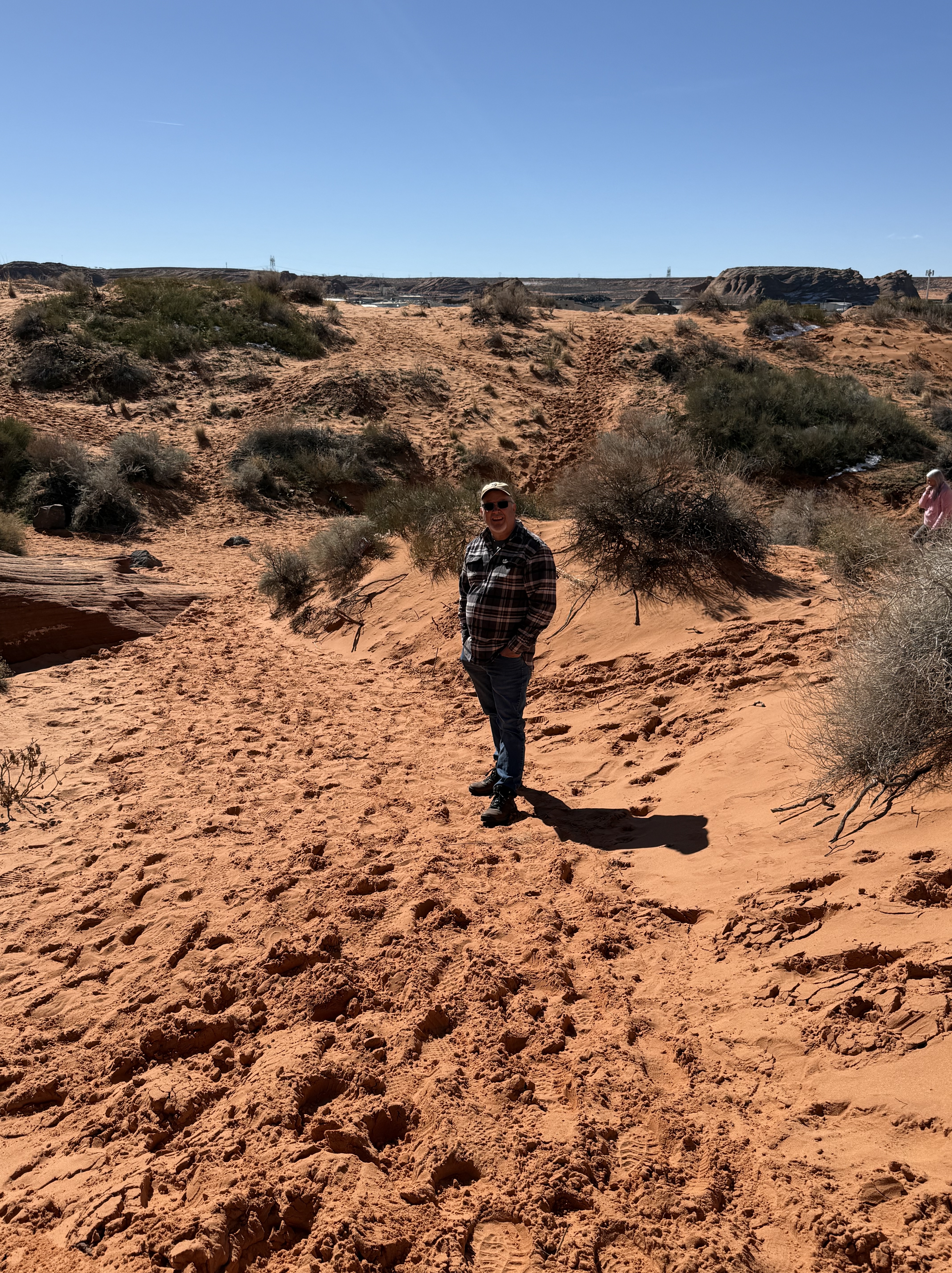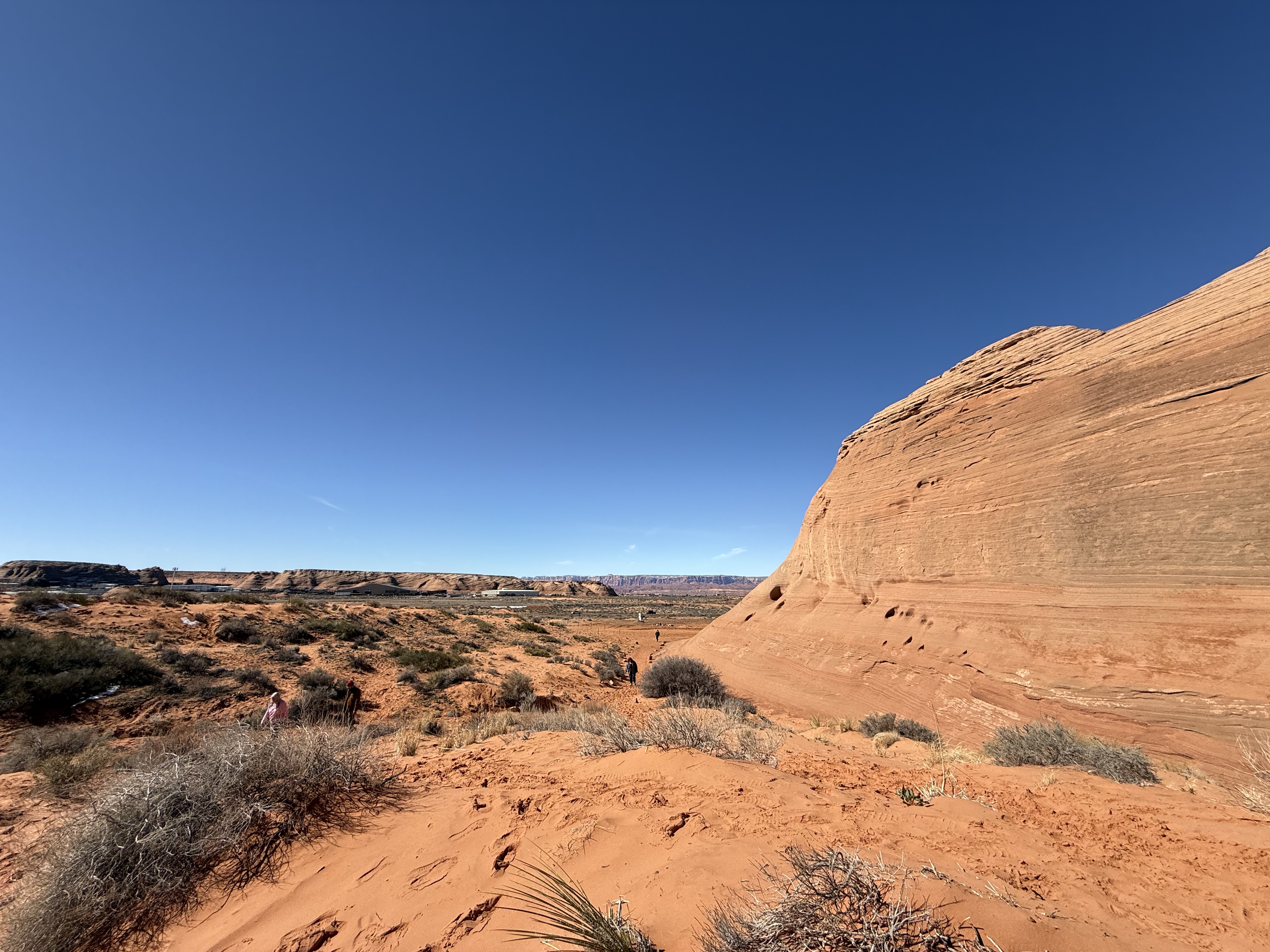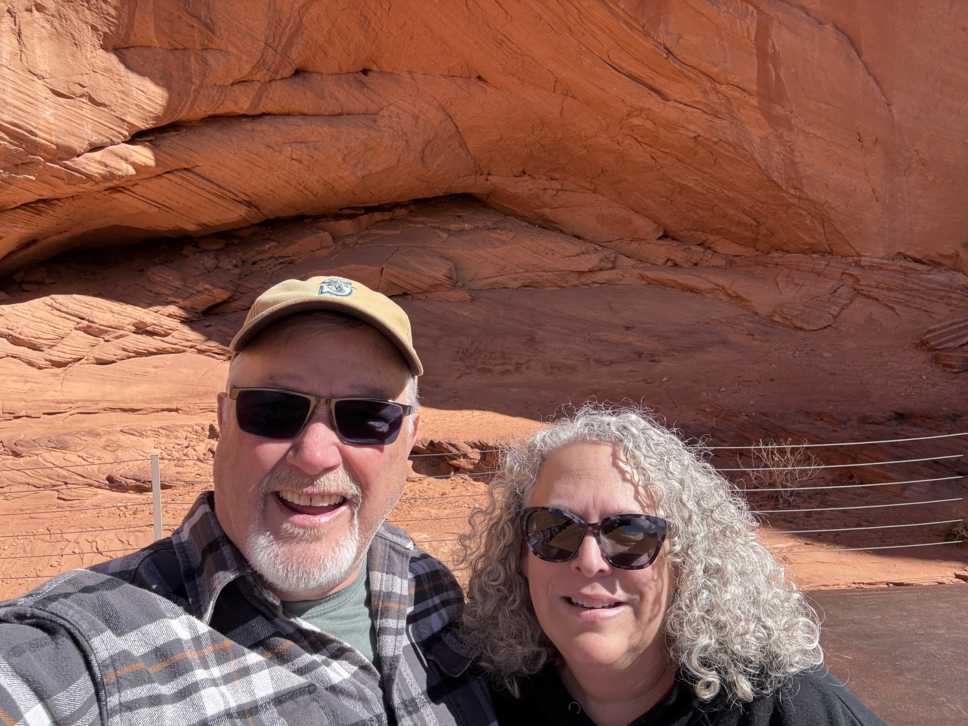 On our way out of town, we stopped at Horseshoe Bend. It costs $10 to enter for a personal vehicle, and because it is a city attraction, passes like the America the Beautiful permit are not valid. The hike is 1.5 miles round trip, with an elevation change of about 750 feet. The trail is loose gravel/packed dirt. It would be difficult to take a stroller or other wheeled device, although we did see some folks trying. Even though it’s only 3/4 mile one way, the hike back up while I wouldn’t call it difficult, it was a work out! It was moderately warm (sweatshirt temp) and we commented that it would be unbearable in the heat of the summer. There was a bigger crowd than we thought there would be, but undoubtedly nothing compared to ‘in season’ crowds, as well over a million people visit this site annually. Despite there being numerous signs telling people to stay on the path and behind the railing at the overlook, there were numerous people standing, sitting and posing on the rocks outside of those areas and right at the edge of canyon. It took everything with in me to not break out my “mom voice” and tell them to GET AWAY FROM THAT EDGE!! It’s idiots like these that will ruin this beautiful “East Rim of the Grand Canyon” for the rest of us.
