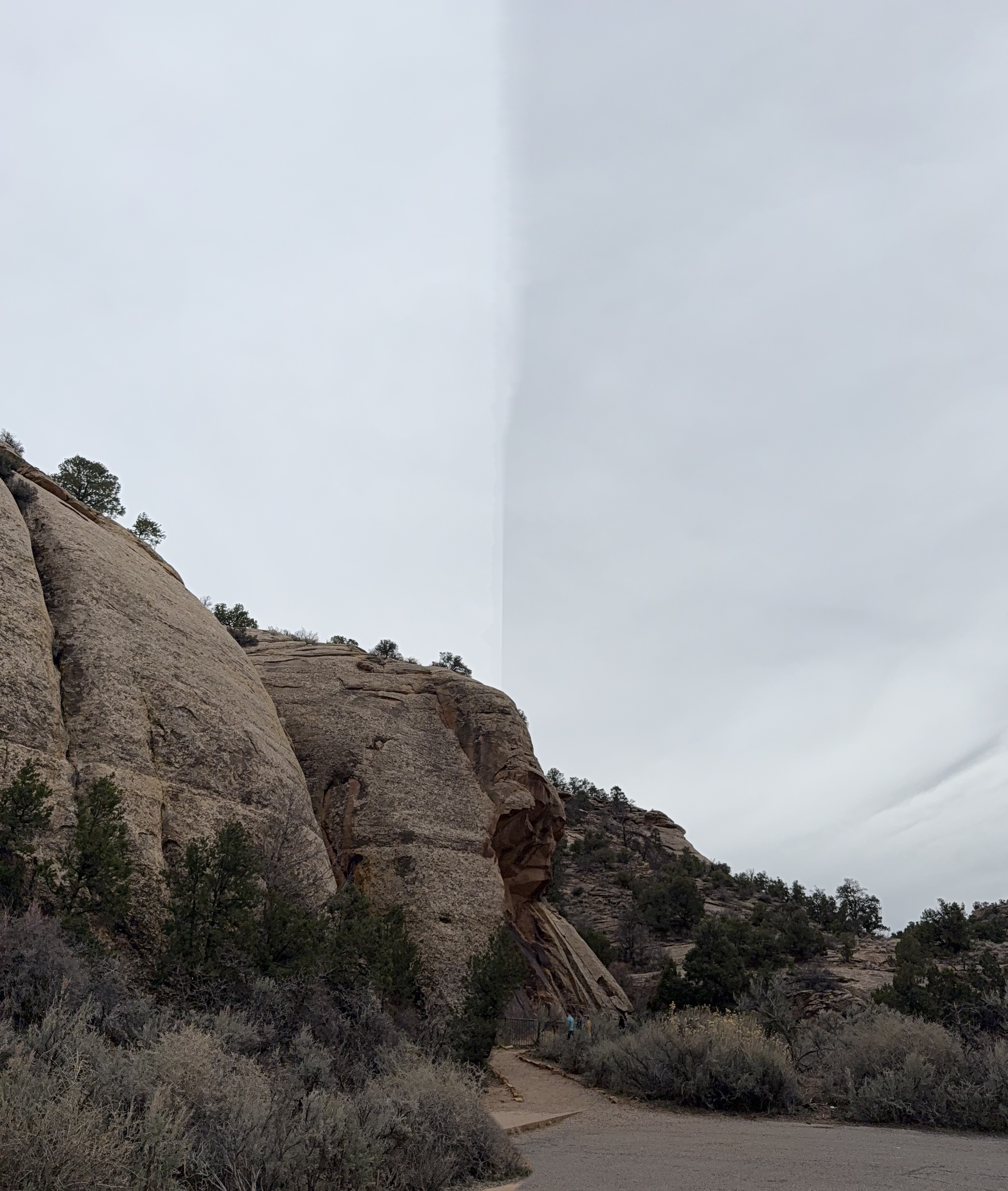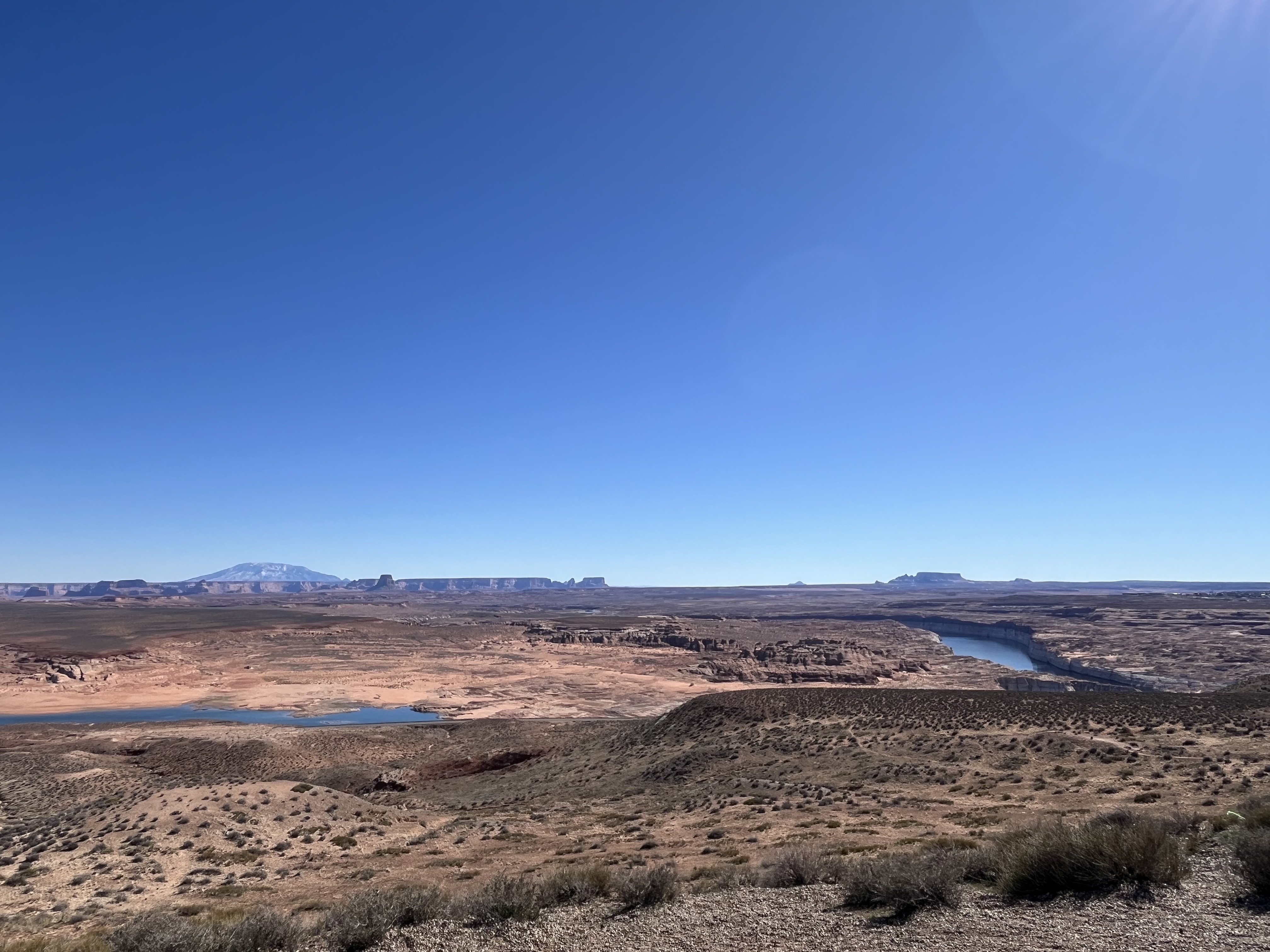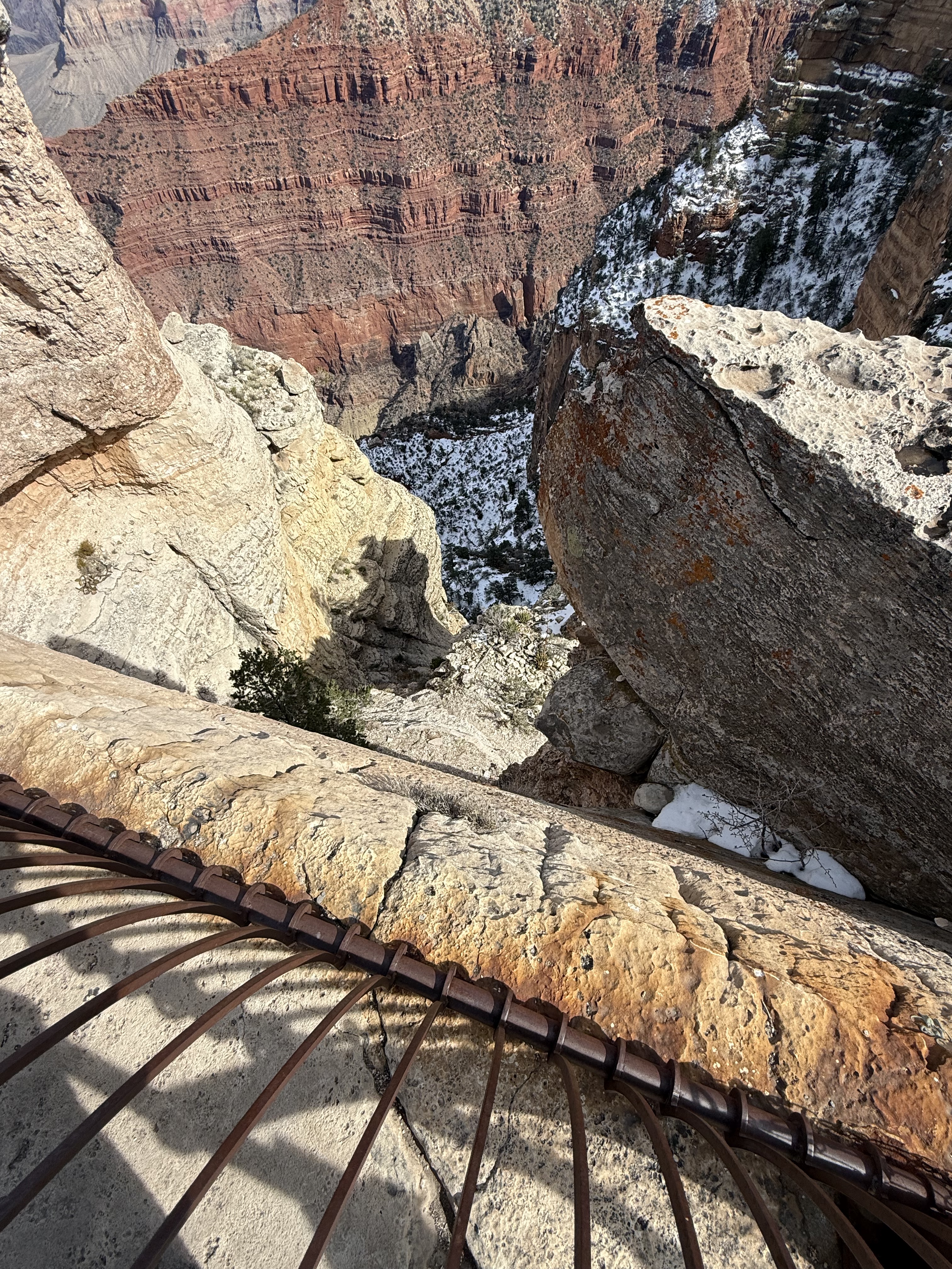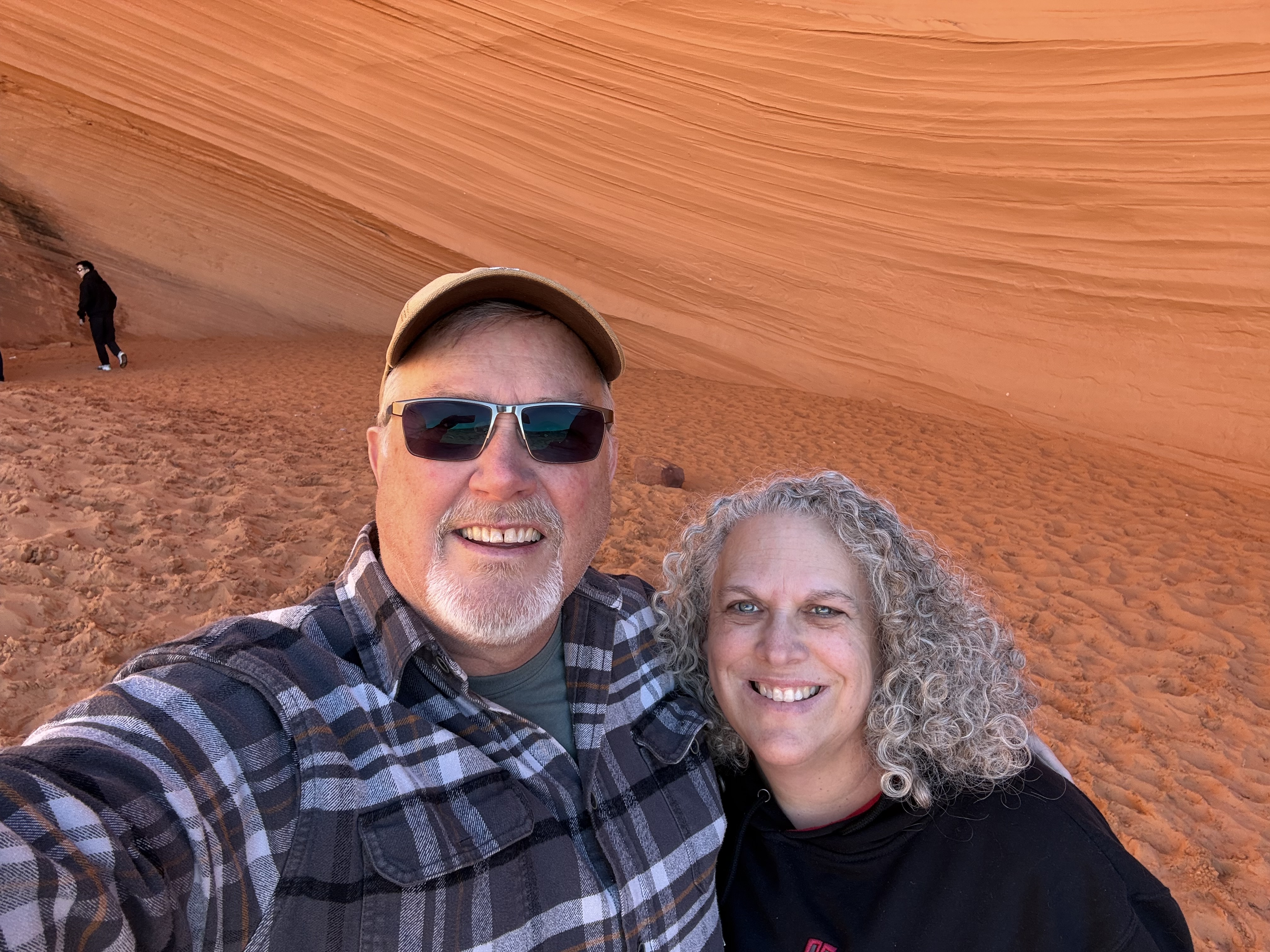 On our way out of town, we stopped at Horseshoe Bend. It costs $10 to enter for a personal vehicle, and because it is a city attraction, passes like the America the Beautiful permit are not valid. The hike is 1.5 miles round trip, with an elevation change of about 750 feet. The trail is loose gravel/packed dirt. It would be difficult to take a stroller or other wheeled device, although we did see some folks trying. Even though it’s only 3/4 mile one way, the hike back up while I wouldn’t call it difficult, it was a work out! It was moderately warm (sweatshirt temp) and we commented that it would be unbearable in the heat of the summer. There was a bigger crowd than we thought there would be, but undoubtedly nothing compared to ‘in season’ crowds, as well over a million people visit this site annually. Despite there being numerous signs telling people to stay on the path and behind the railing at the overlook, there were numerous people standing, sitting and posing on the rocks outside of those areas and right at the edge of canyon. It took everything with in me to not break out my “mom voice” and tell them to GET AWAY FROM THAT EDGE!! It’s idiots like these that will ruin this beautiful “East Rim of the Grand Canyon” for the rest of us.