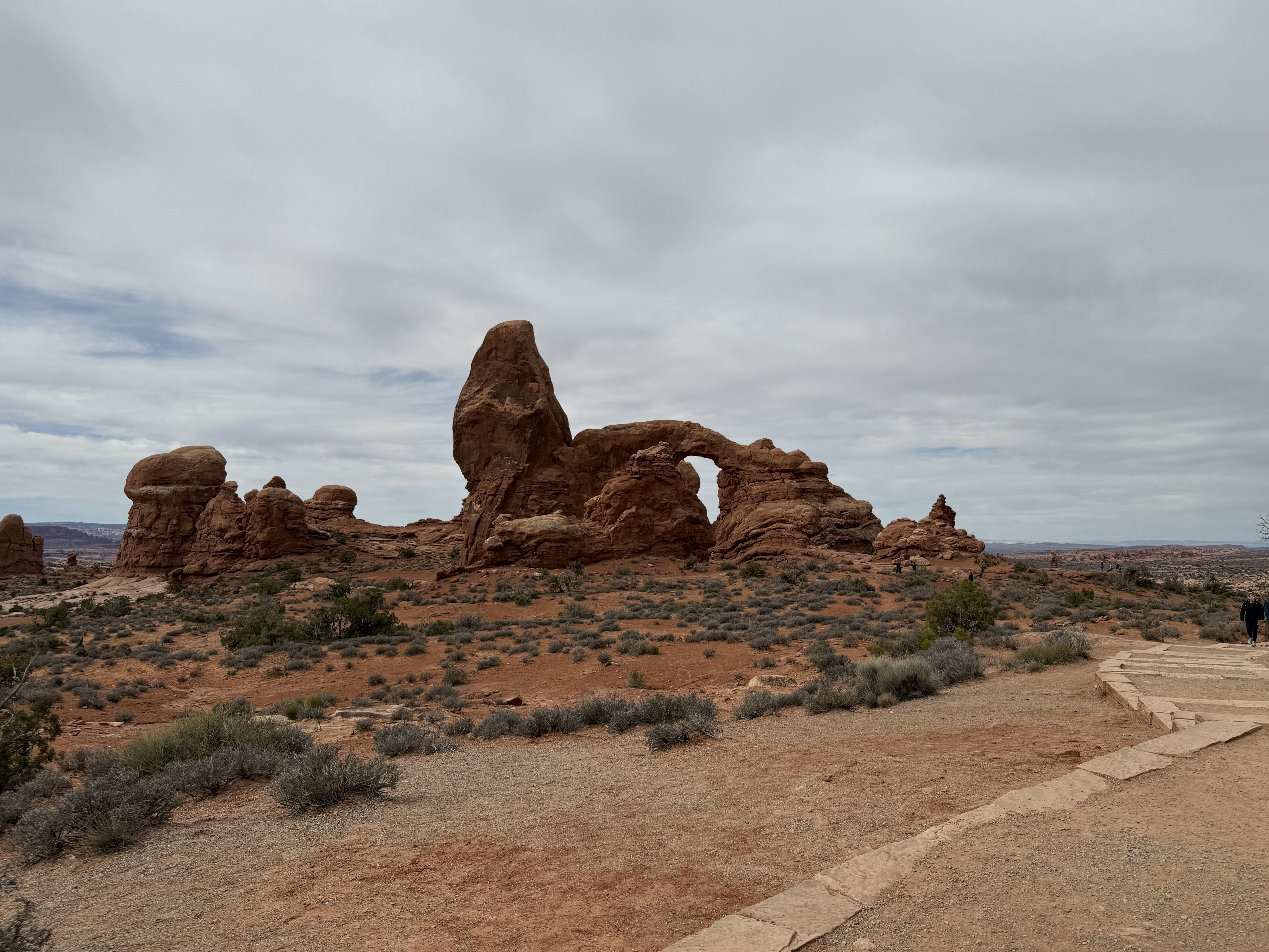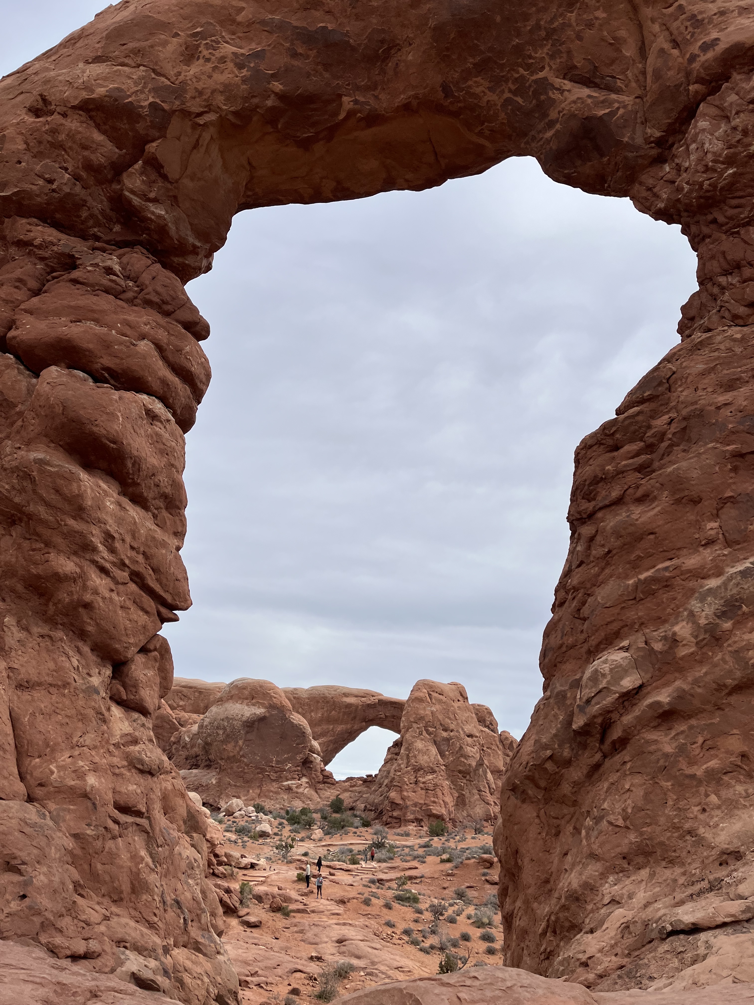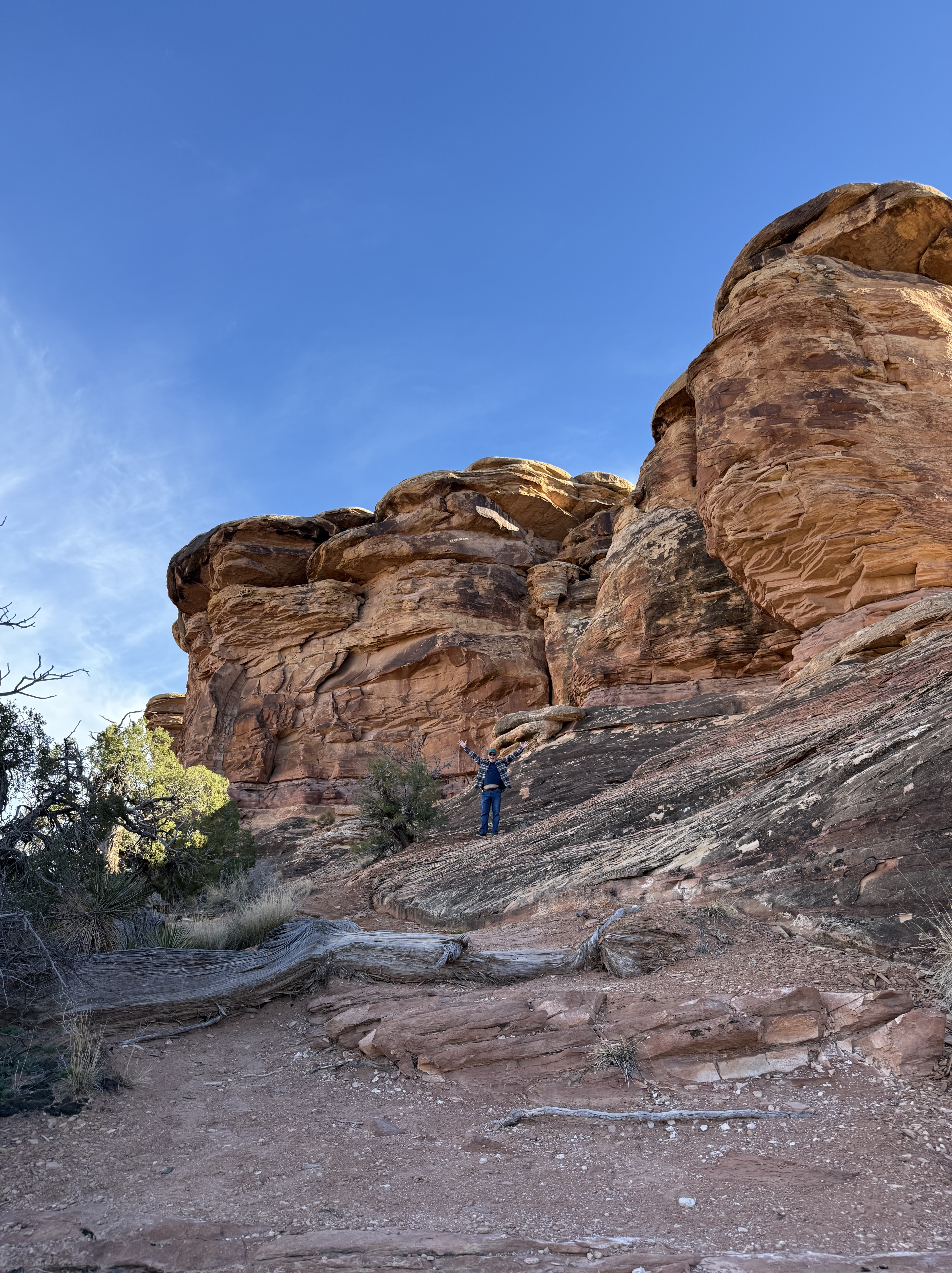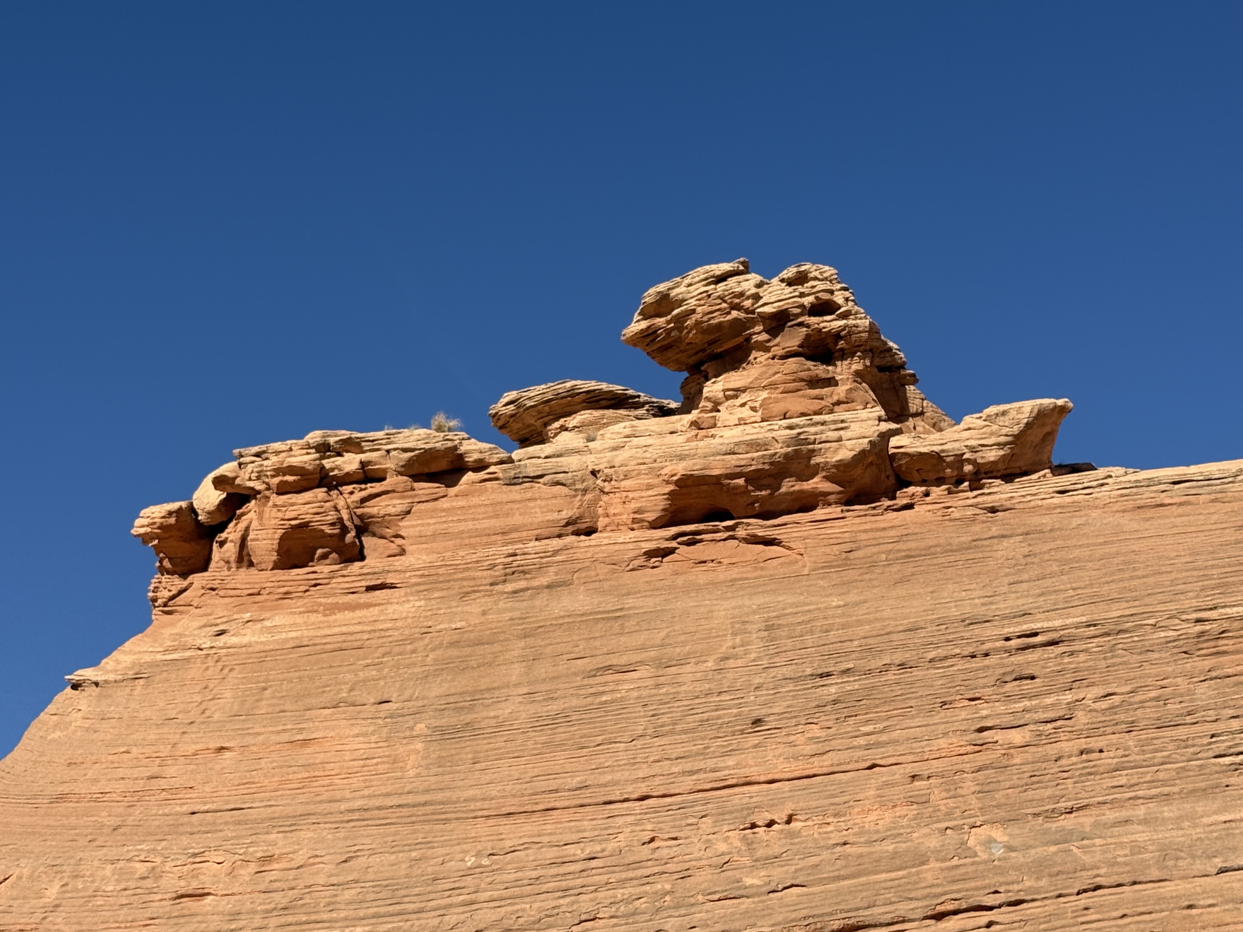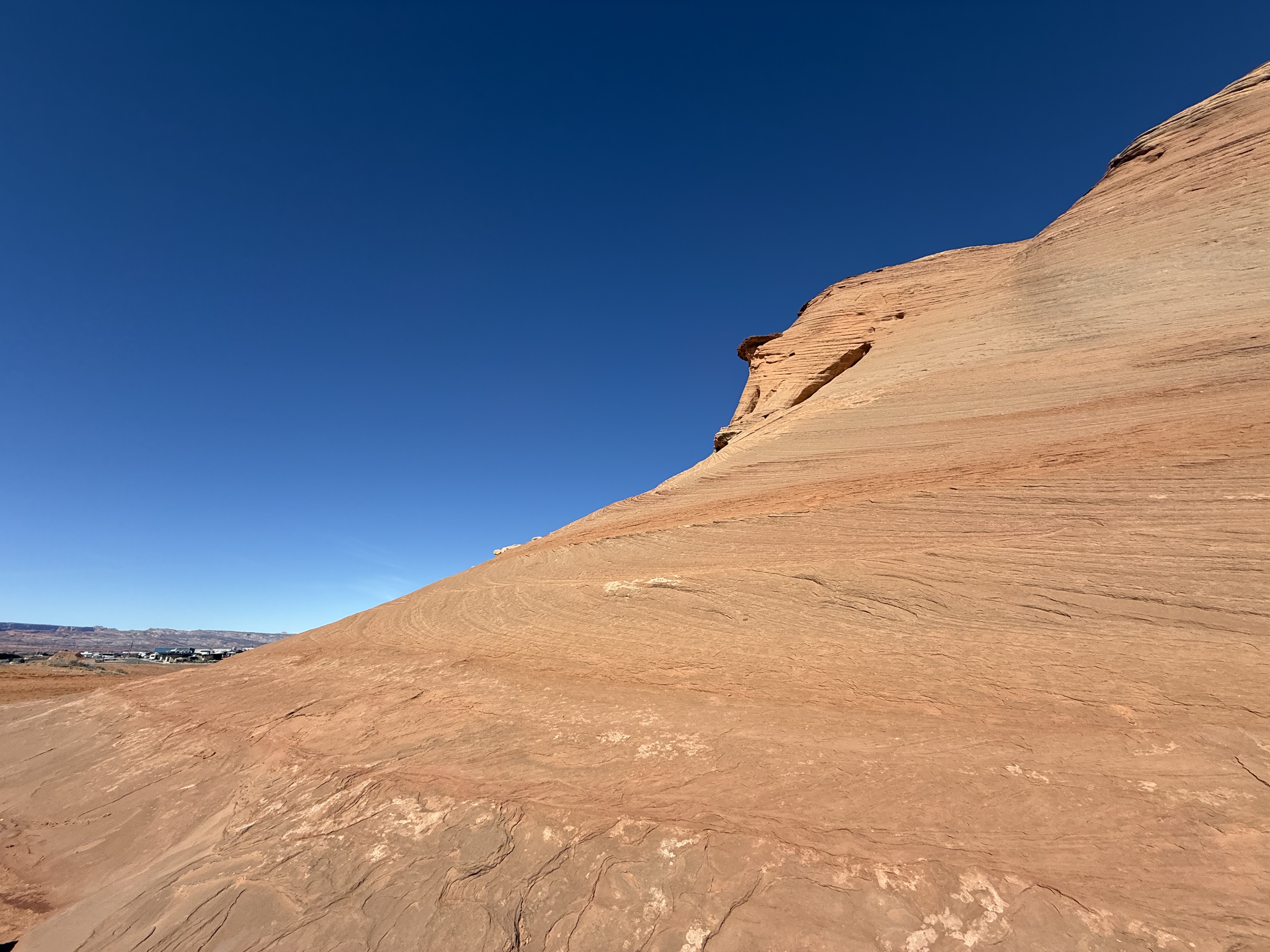 On our way out of town, we stopped at Horseshoe Bend. It costs $10 to enter for a personal vehicle, and because it is a city attraction, passes like the America the Beautiful permit are not valid. The hike is 1.5 miles round trip, with an elevation change of about 750 feet. The trail is loose gravel/packed dirt. It would be difficult to take a stroller or other wheeled device, although we did see some folks trying. Even though it’s only 3/4 mile one way, the hike back up while I wouldn’t call it difficult, it was a work out! It was moderately warm (sweatshirt temp) and we commented that it would be unbearable in the heat of the summer. There was a bigger crowd than we thought there would be, but undoubtedly nothing compared to ‘in season’ crowds, as well over a million people visit this site annually. Despite there being numerous signs telling people to stay on the path and behind the railing at the overlook, there were numerous people standing, sitting and posing on the rocks outside of those areas and right at the edge of canyon. It took everything with in me to not break out my “mom voice” and tell them to GET AWAY FROM THAT EDGE!! It’s idiots like these that will ruin this beautiful “East Rim of the Grand Canyon” for the rest of us.