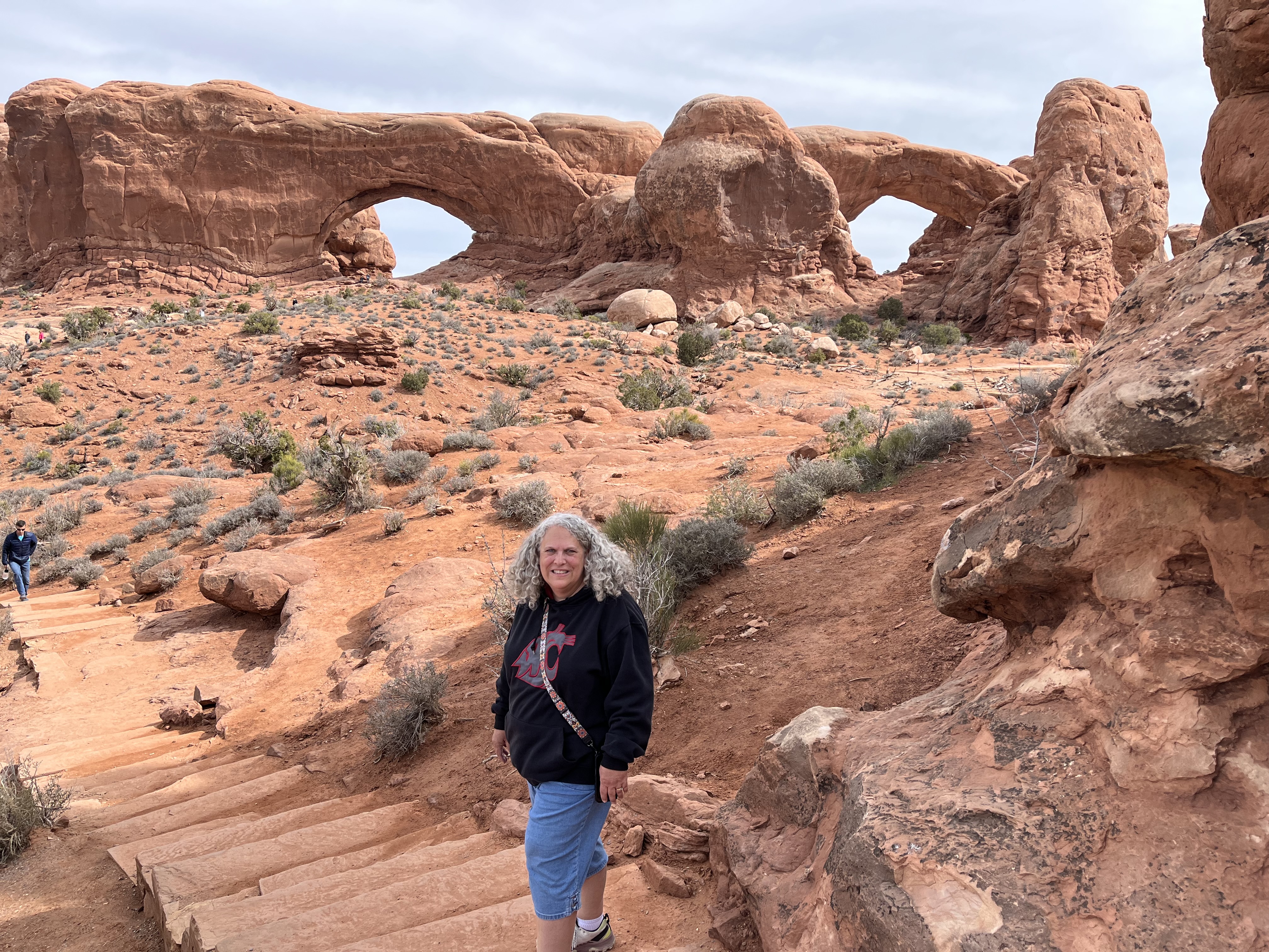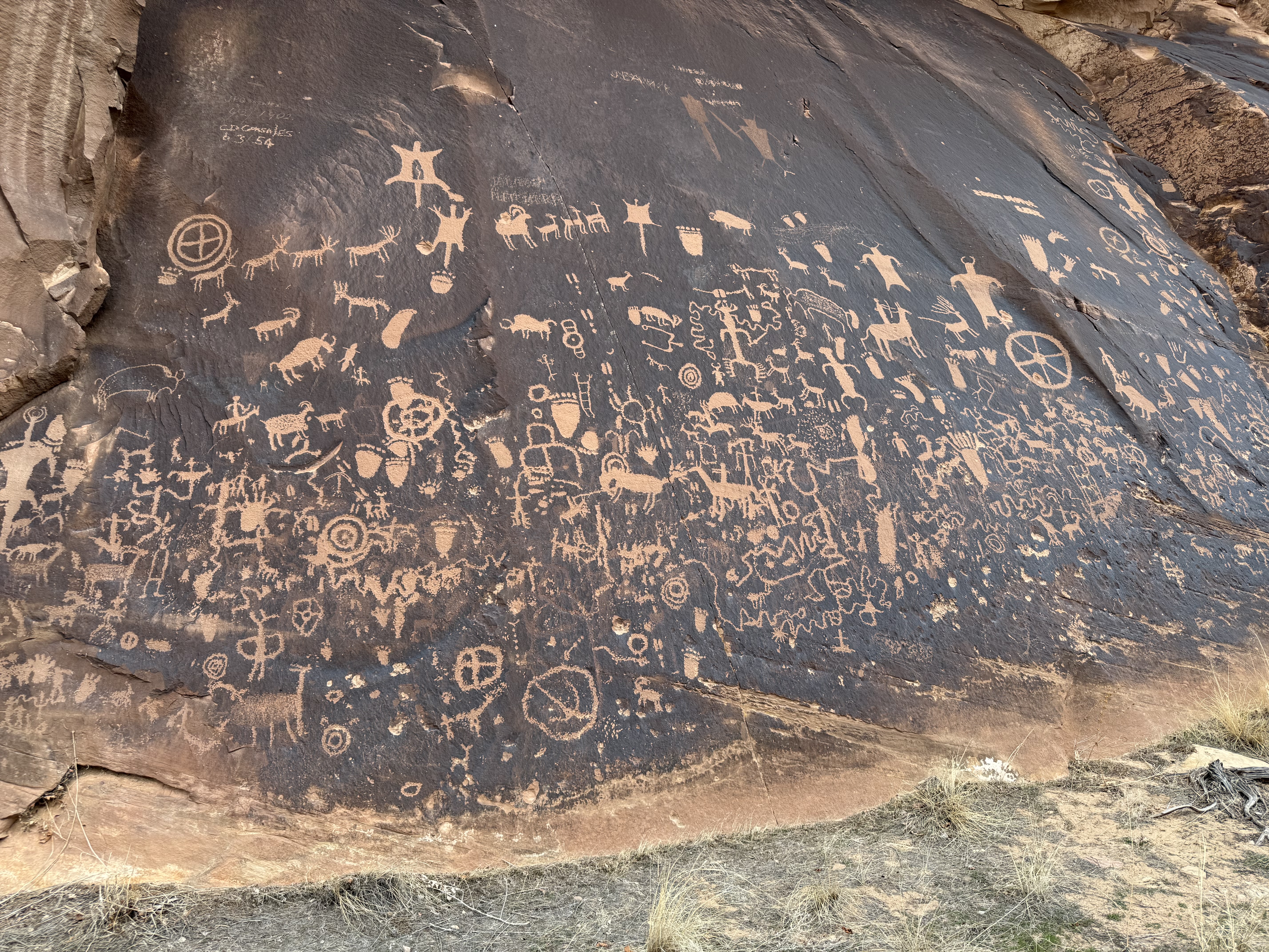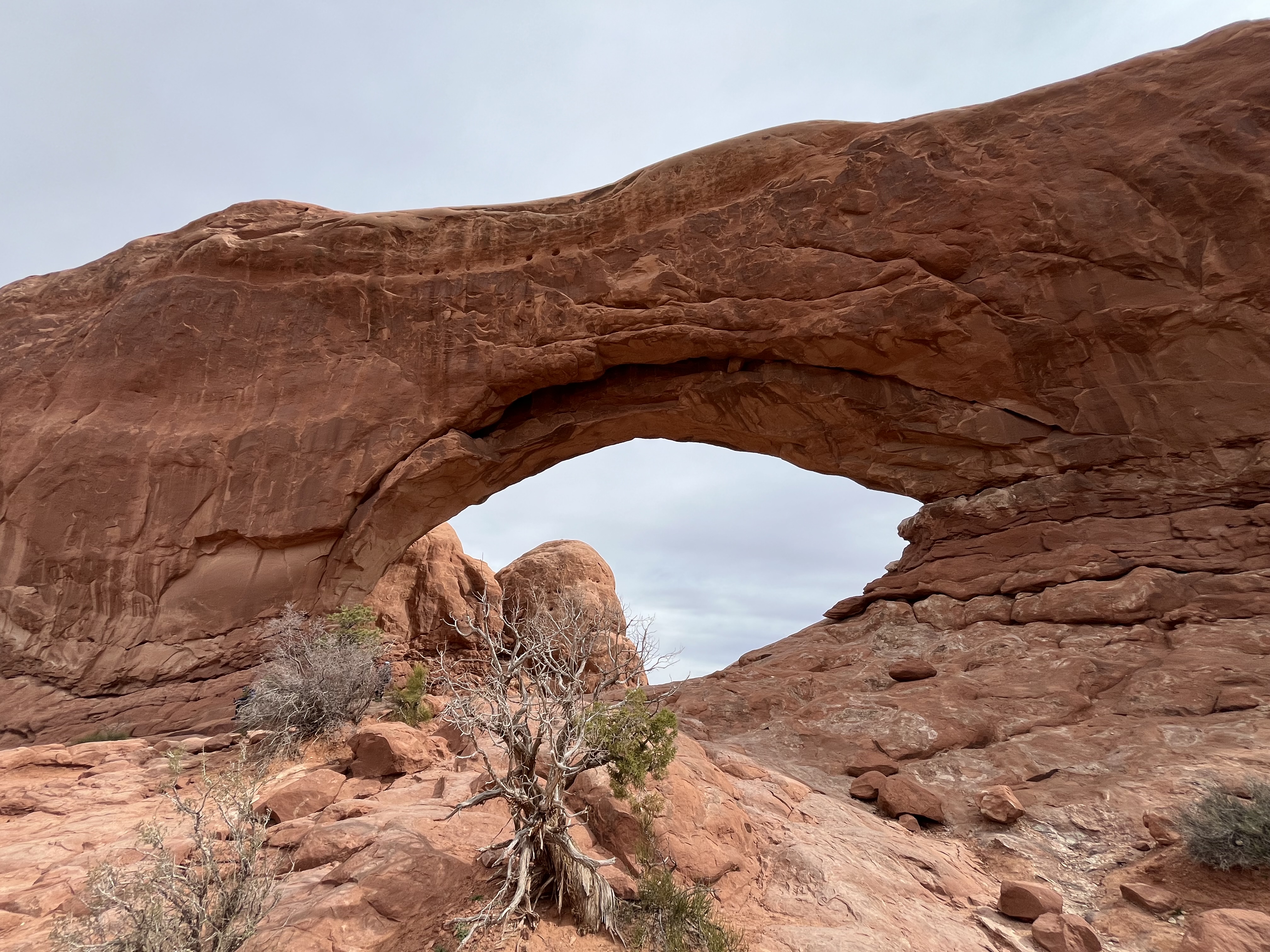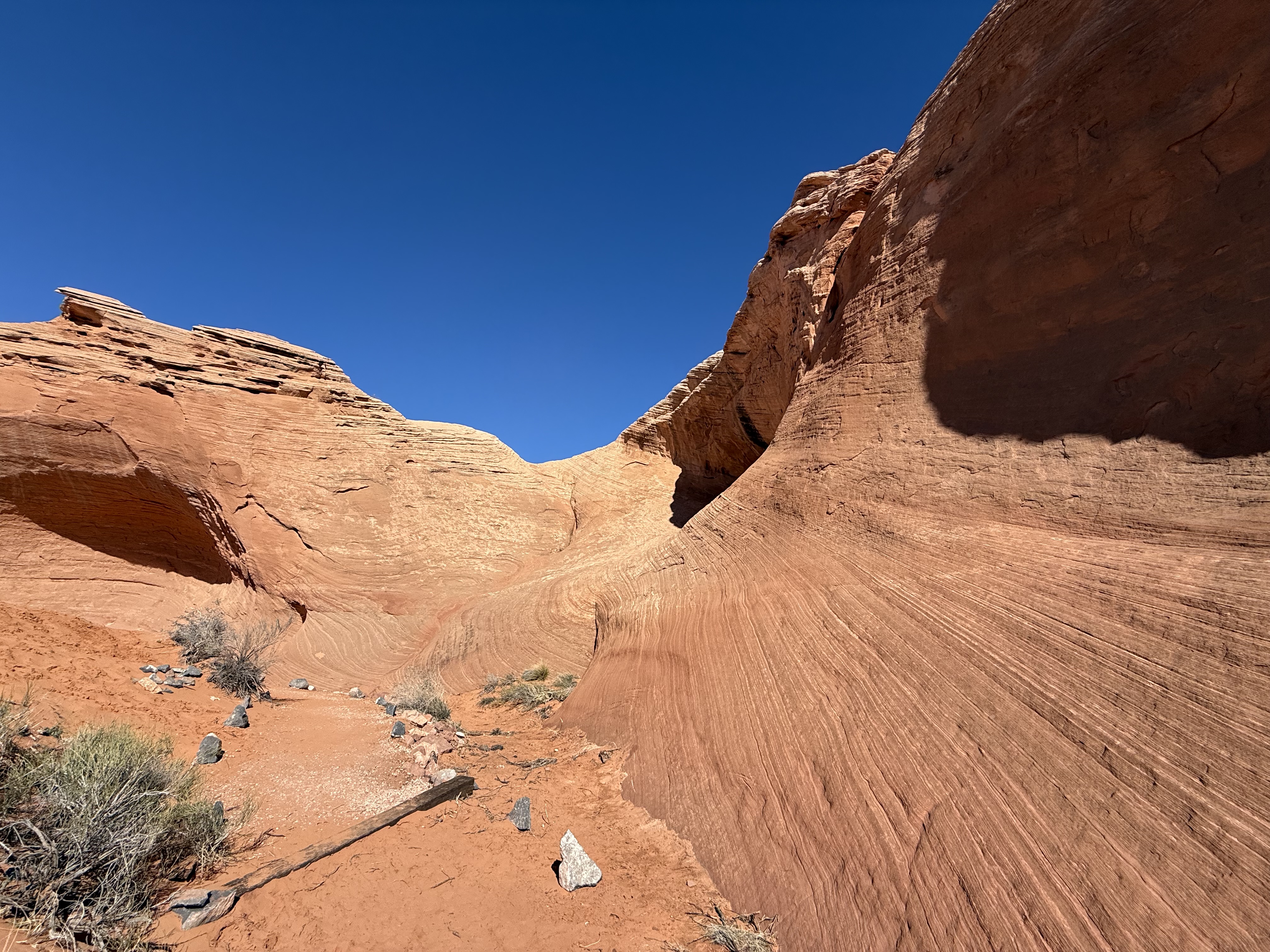 On our way out of town, we stopped at Horseshoe Bend. It costs $10 to enter for a personal vehicle, and because it is a city attraction, passes like the America the Beautiful permit are not valid. The hike is 1.5 miles round trip, with an elevation change of about 750 feet. The trail is loose gravel/packed dirt. It would be difficult to take a stroller or other wheeled device, although we did see some folks trying. Even though it’s only 3/4 mile one way, the hike back up while I wouldn’t call it difficult, it was a work out! It was moderately warm (sweatshirt temp) and we commented that it would be unbearable in the heat of the summer. There was a bigger crowd than we thought there would be, but undoubtedly nothing compared to ‘in season’ crowds, as well over a million people visit this site annually. Despite there being numerous signs telling people to stay on the path and behind the railing at the overlook, there were numerous people standing, sitting and posing on the rocks outside of those areas and right at the edge of canyon. It took everything with in me to not break out my “mom voice” and tell them to GET AWAY FROM THAT EDGE!! It’s idiots like these that will ruin this beautiful “East Rim of the Grand Canyon” for the rest of us.