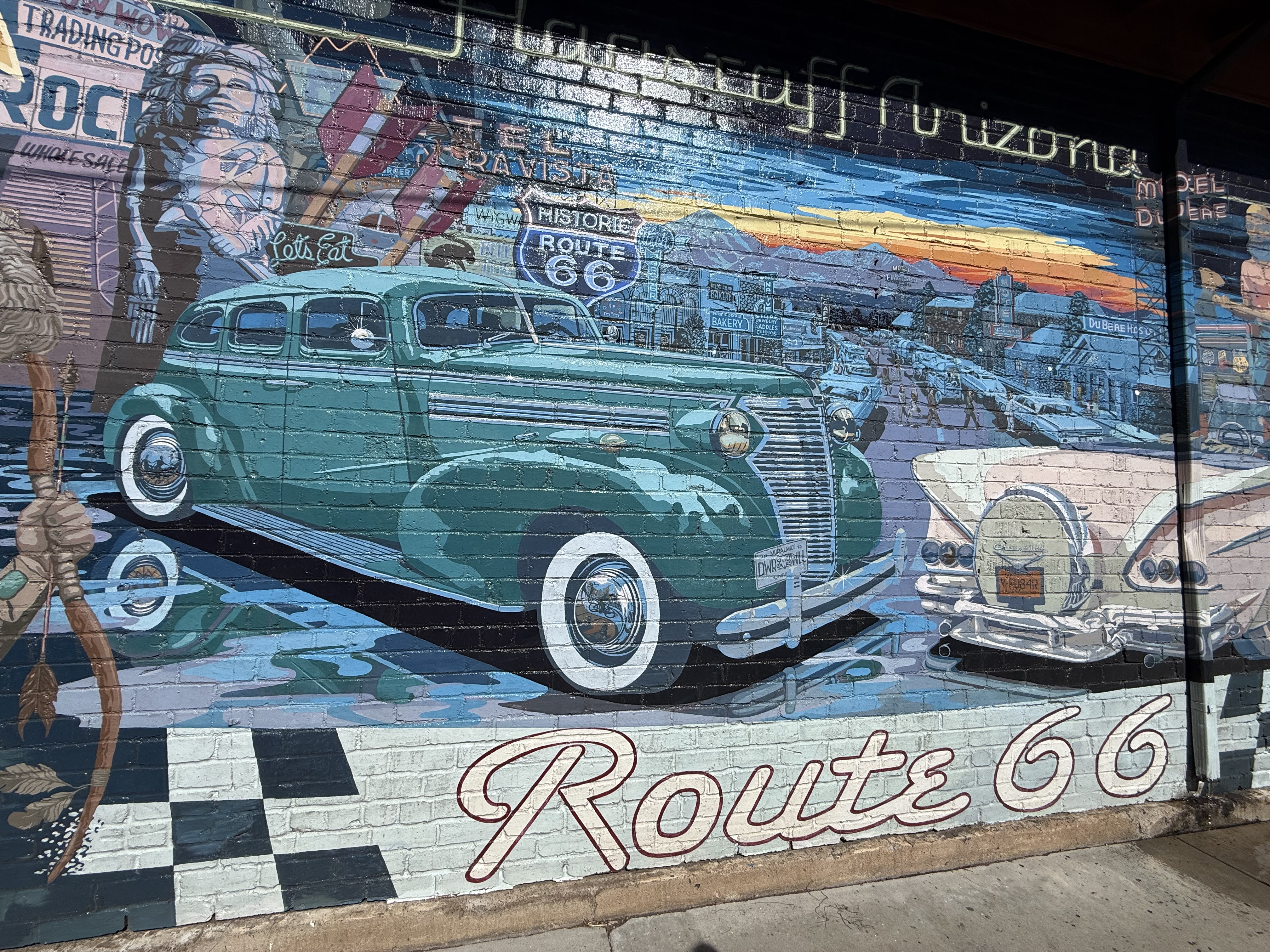 We visited the Visitor Center near the train station, and found a Route 66 road mural, as well as several other murals nearby.