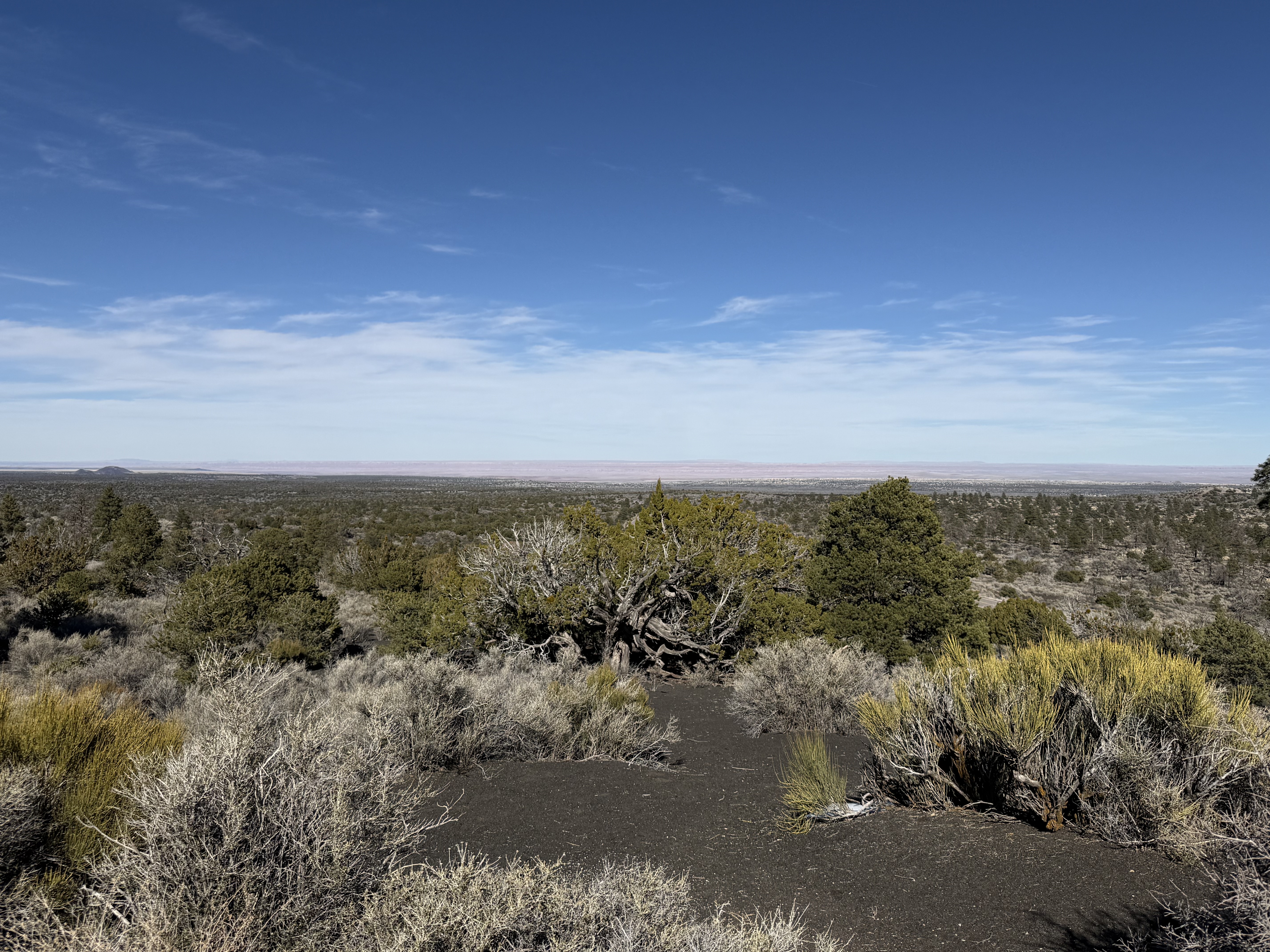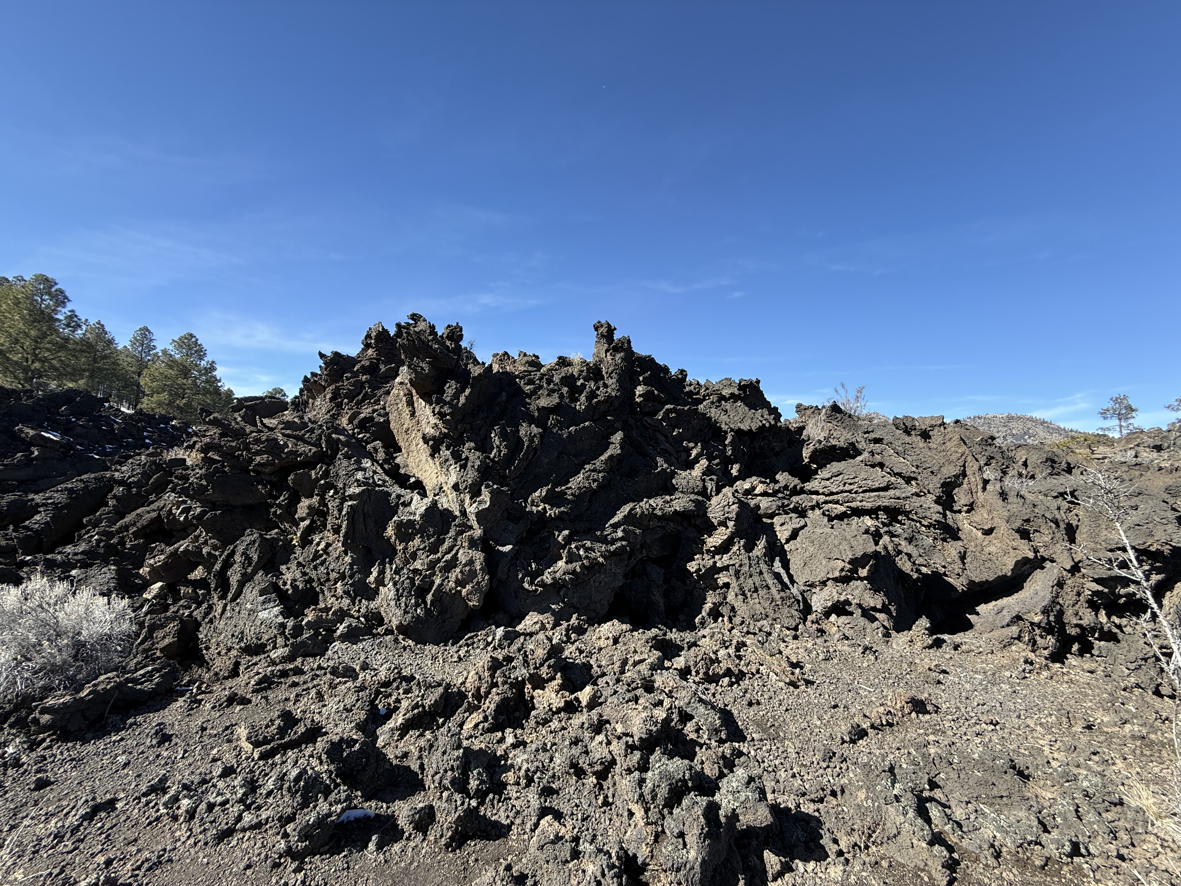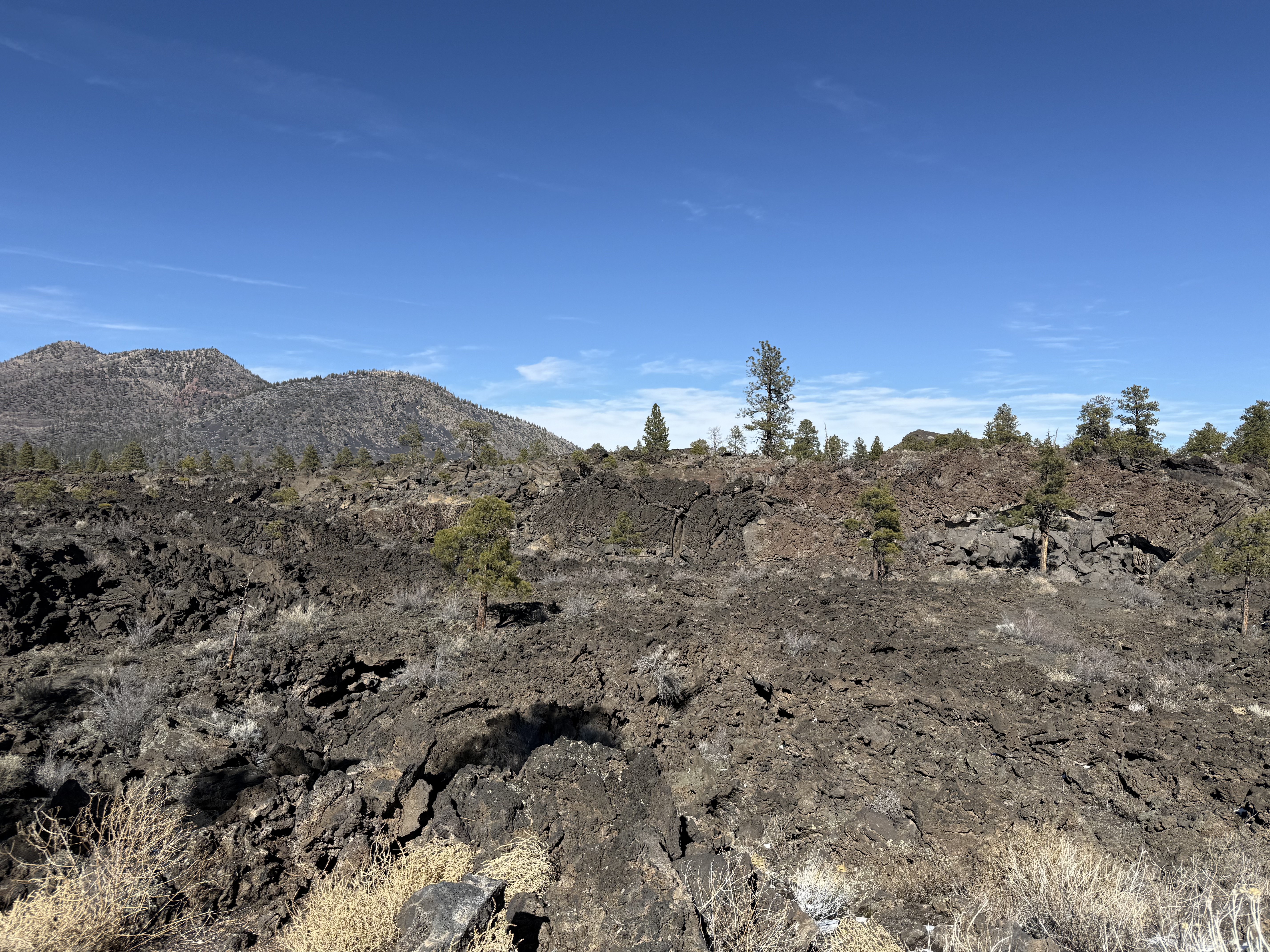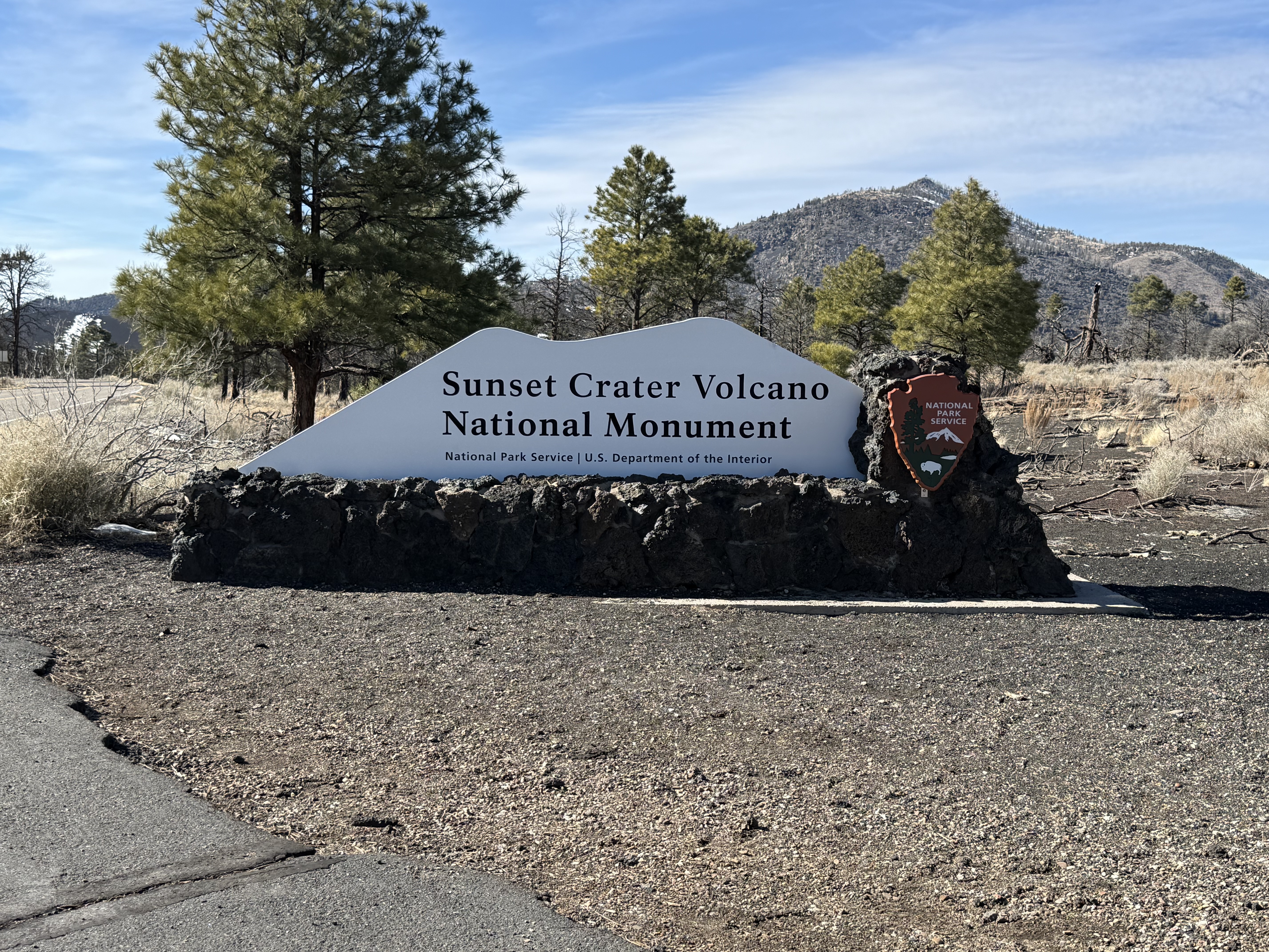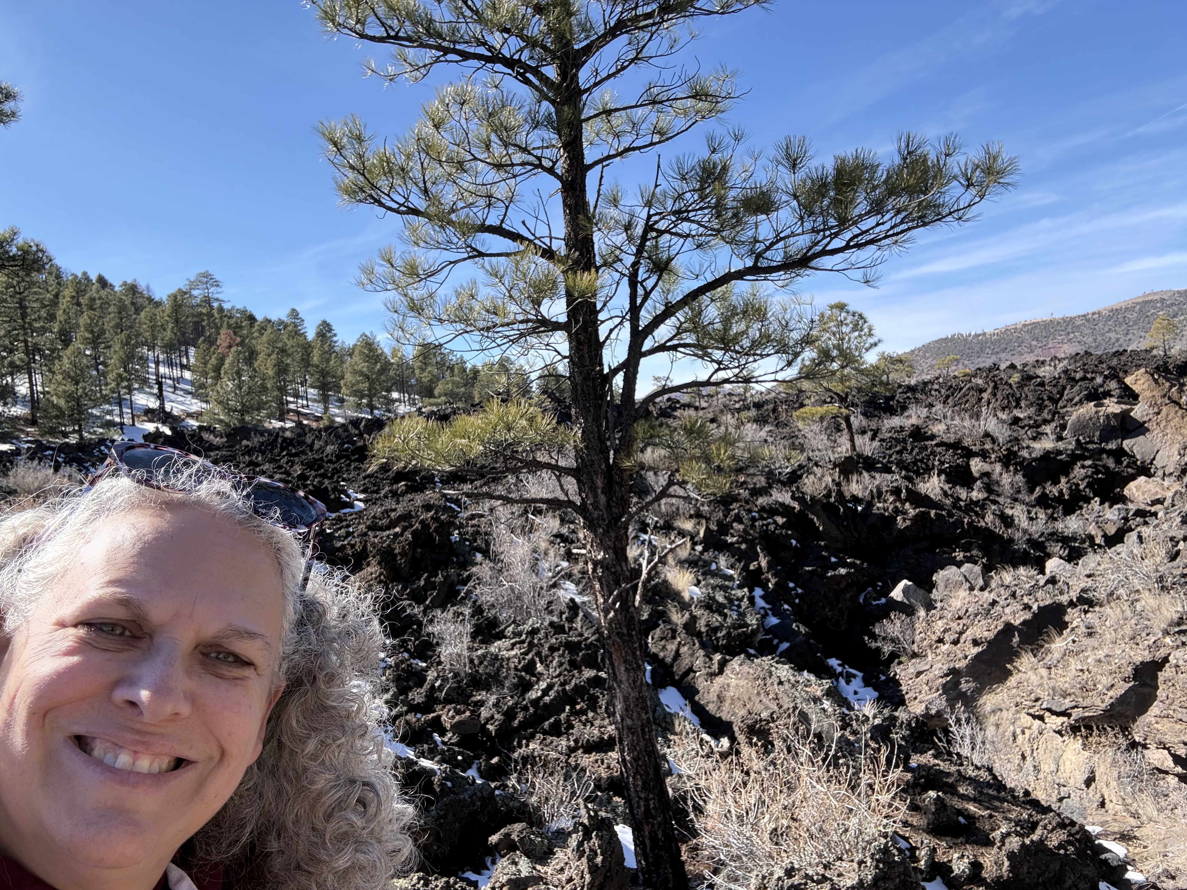 The day was still young! So we decided to visit the Sunset Crater National Monument and the Wupatki National Monument, which happen to be within just a couple miles of each other. The Sunset Crater Visitor Center was staffed by a very helpful park ranger and volunteer. We took a short hike around the Bonito Lava Flow. and then drove to the top of an overlook, which gave us some beautiful views of the surrounding area. It was as close as we were allowed to be to the actual crater.