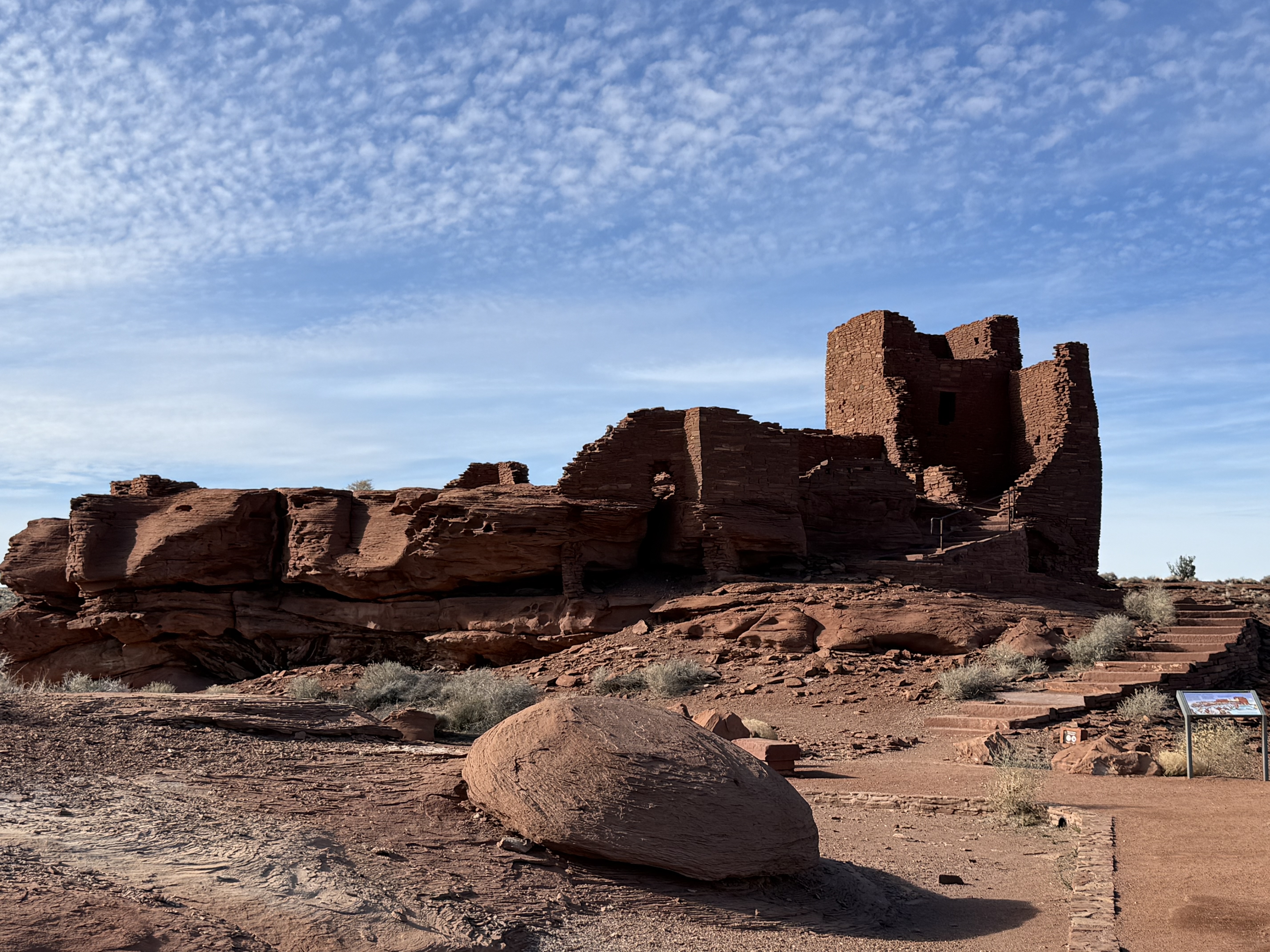 A short drive down the road.brought us to the Wupatki NM. These ancient pueblos had some incredible masonry work to stand the test of time as they have. We made a quick stop at this visitor center too, and collected a stamp in our National Park Passport book. Although the book doesn’t have a specific place for National Monuments or National Historic Places, we’ve been putting the stamps in the “extras” pages at the back of the book.