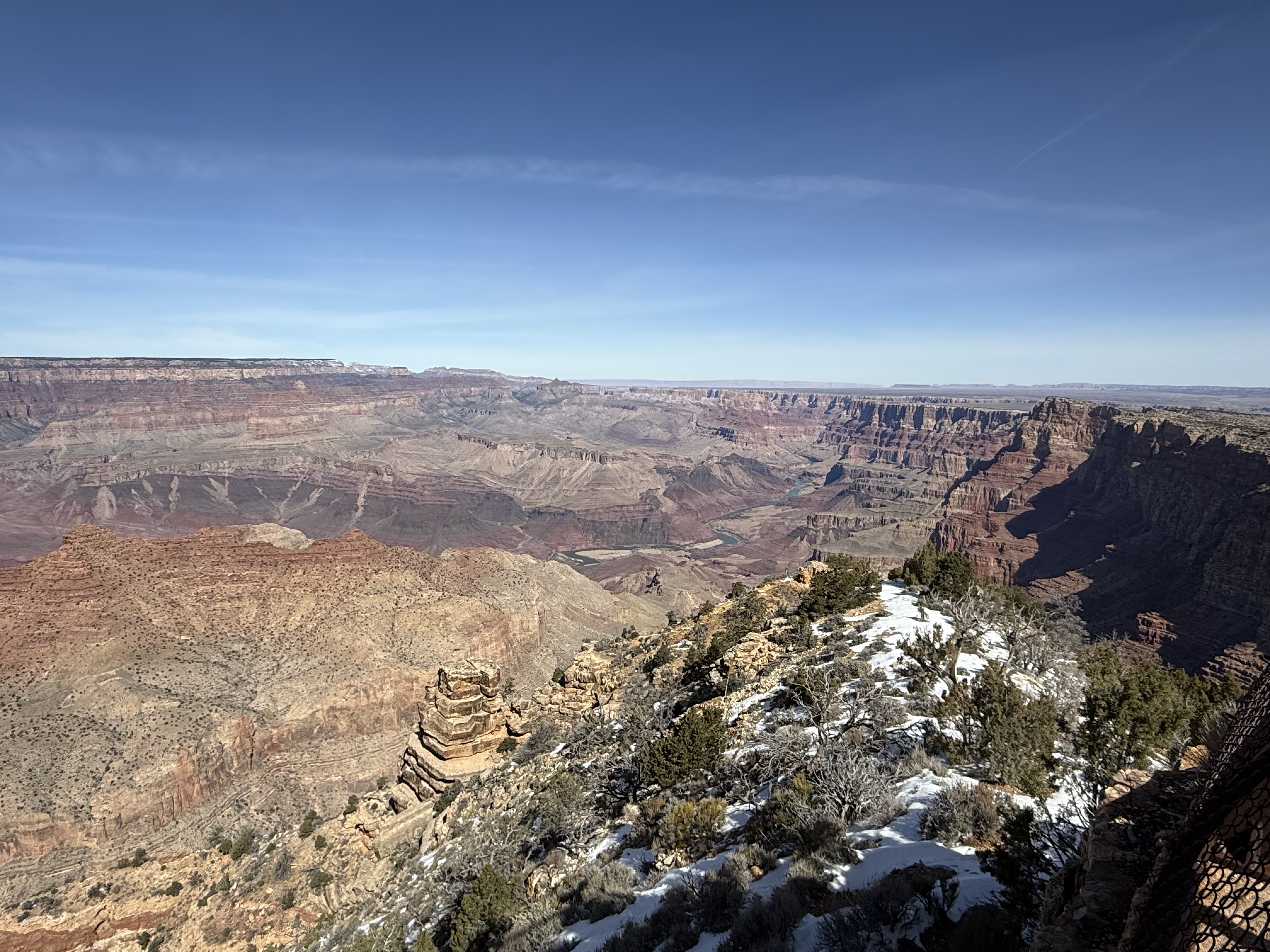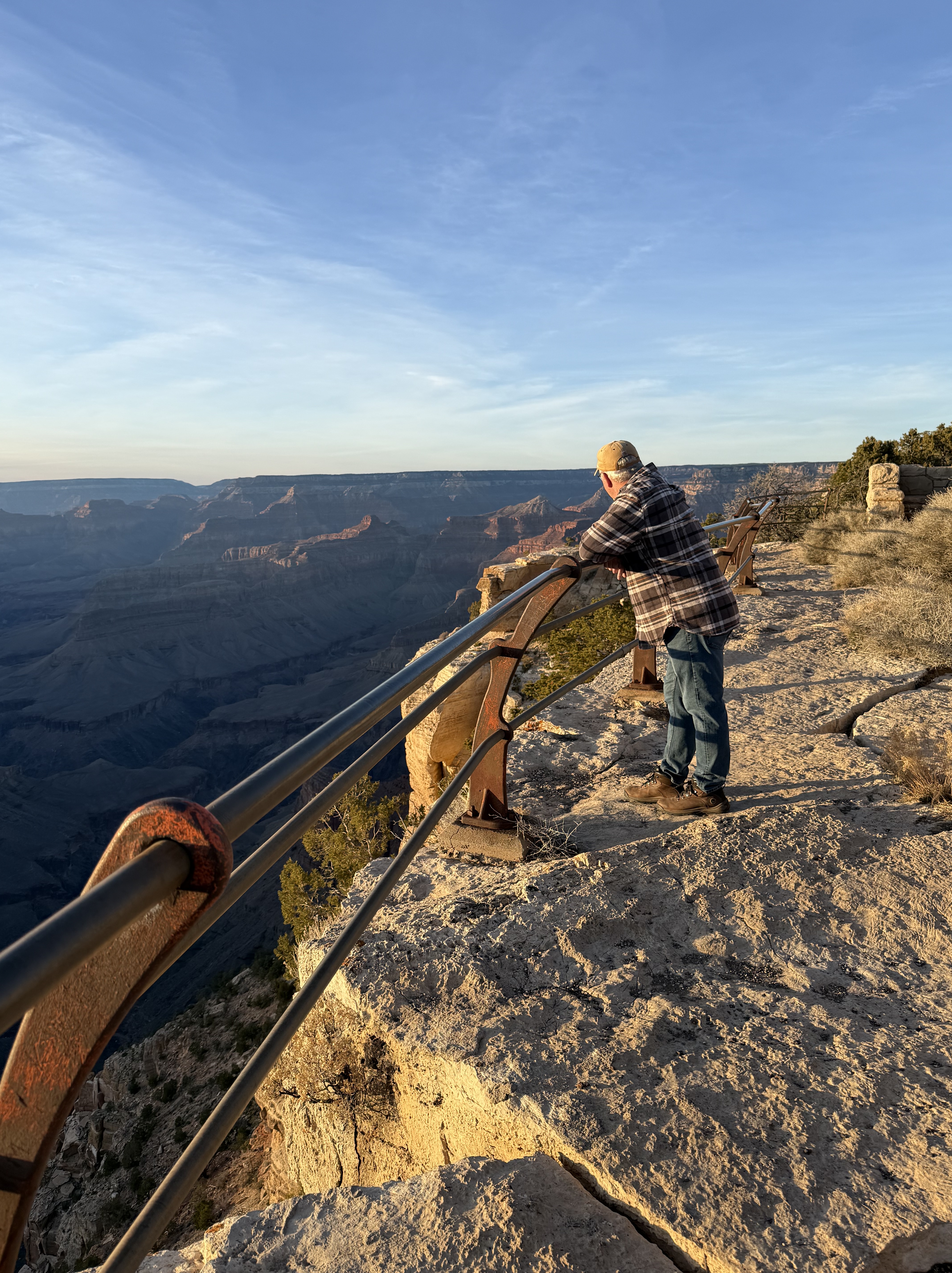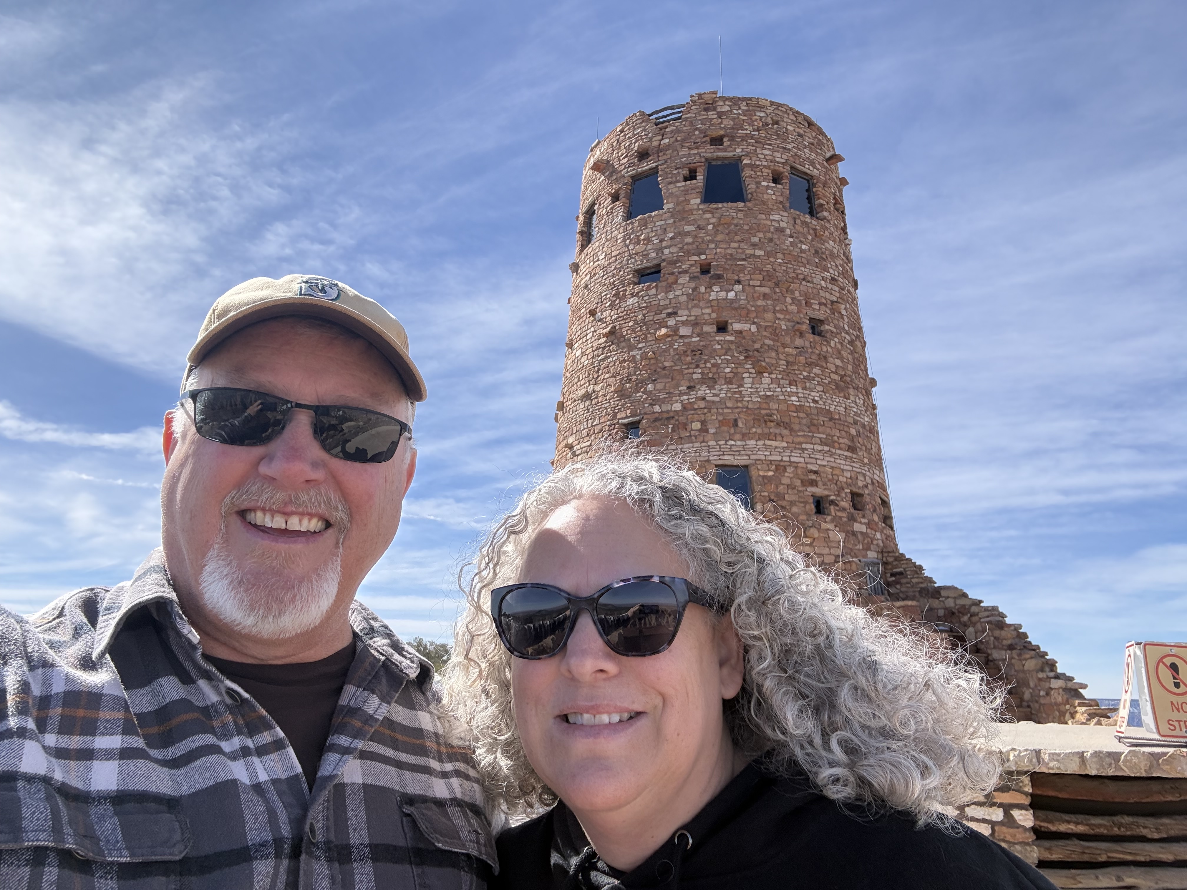 Miles driven to date: You’d think I would’ve remembered for this day, but alas…I did not.We knew this would be a full day, so we hit the road early. It’s about a 90 minute drive from the condo via the east entrance. We had a delightful chat with Ranger Randy about the sights to see, and he encouraged us to visit the Desert View Watch Tower, Mather Overlook, and to traverse Hermit’s Road. This was Jon’s first visit to the Grand Canyon, and I had not been here since 1976, so we were both equally awed by the magnitude of this national (global?) treasure. With each stop we made to view the canyon, we were left speechless. Regardless of how you believe this Wonder of the World came to be, it is simply beyond description, and mind blowing to think that God created something like this just for us humans.