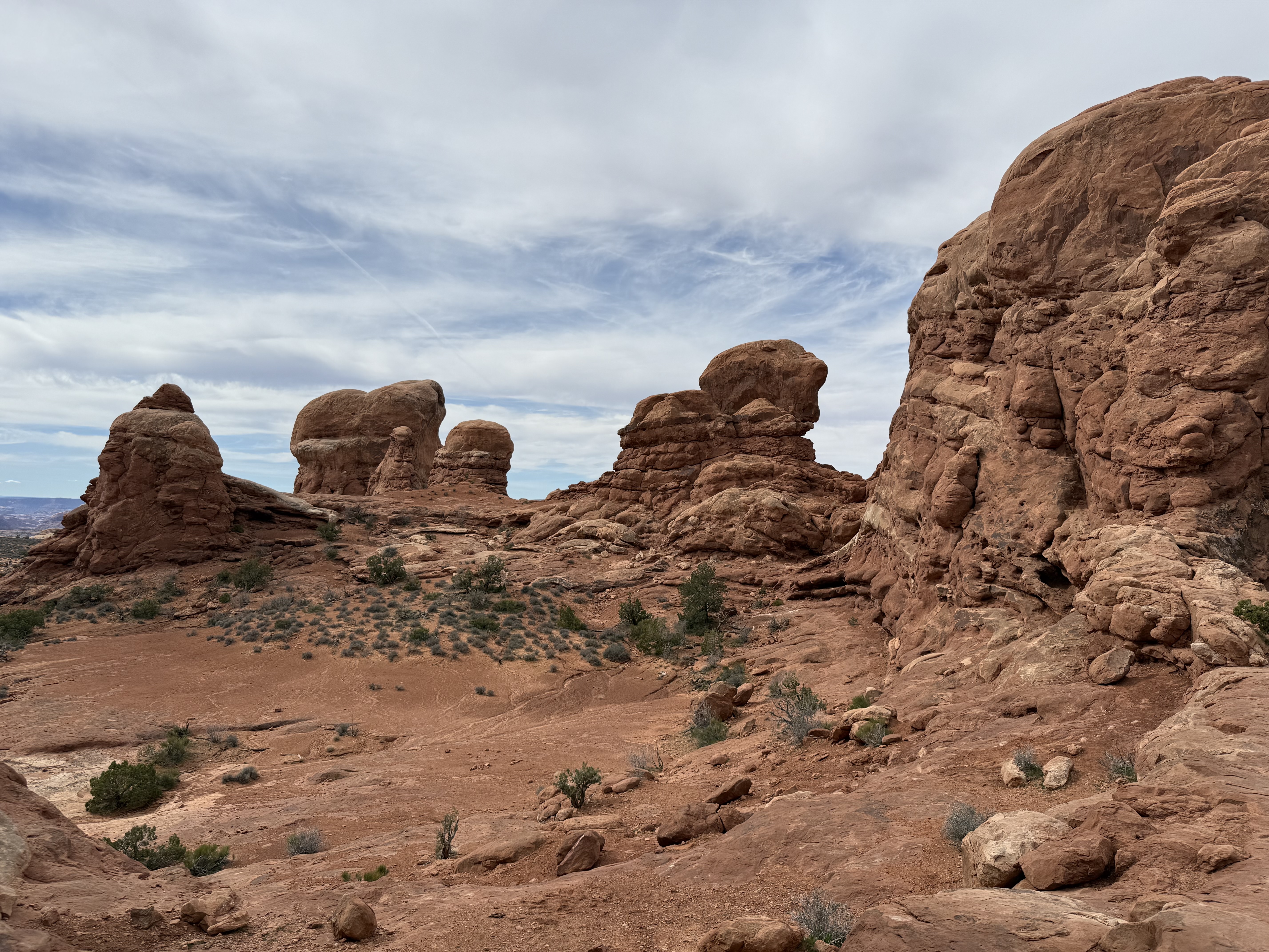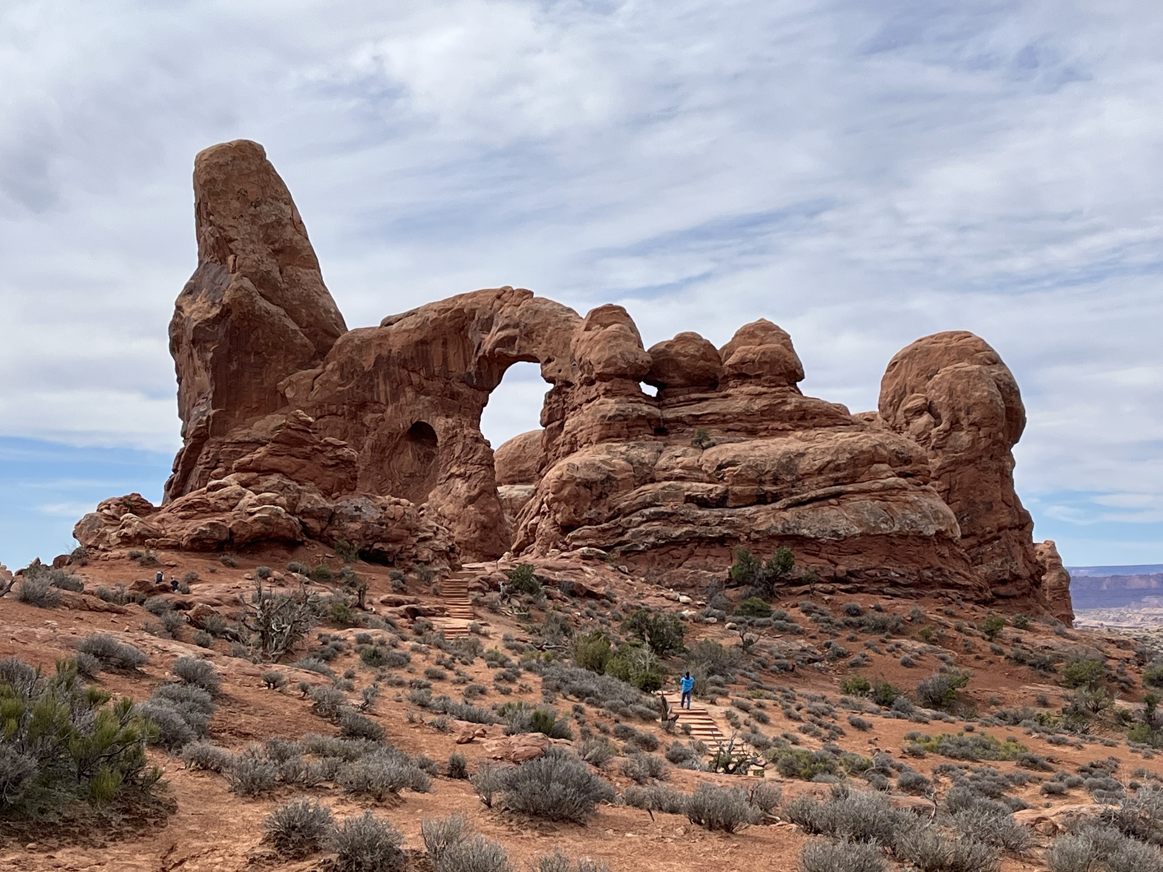 Arches National Park, Moab, UT to Twin Falls, IDWe woke up early and had breakfast at the hotel, and were at the gate to Arches National Park as they were opening. The rocks and dirt of this area was so red! The drive from the visitor center up to to the scenic drive had a feeling of great anticipation. And it did not disappoint! We stopped at a few viewpoints and took in the splendor of canyons, cliffs, and giant bluffs in a variety of colors. The way the rocks seemed to be balanced on top of spires was mind boggling. The park has over 2000 arches, and yet most are not visible from the scenic drive road. We stopped and hiked to a handful of arches. They’re huge! And it was incredible to discover that for so many of these natural wonders, you’re able to truly hike up to and through them. We spent several hours scratching just the surface of what this national park has to offer, and eventually had to tear ourselves away from exploring more. Arches and Canyonlands National Parks had not been on our original itinerary, and consequently we had significantly less time than available to tour through than what either park deserves. We still had a 7+ hour, 500+ mile day of driving ahead of us, so we needed to get on our way. It was with a heavy heart that we had to leave Arches NP and be on our way in the early afternoon.