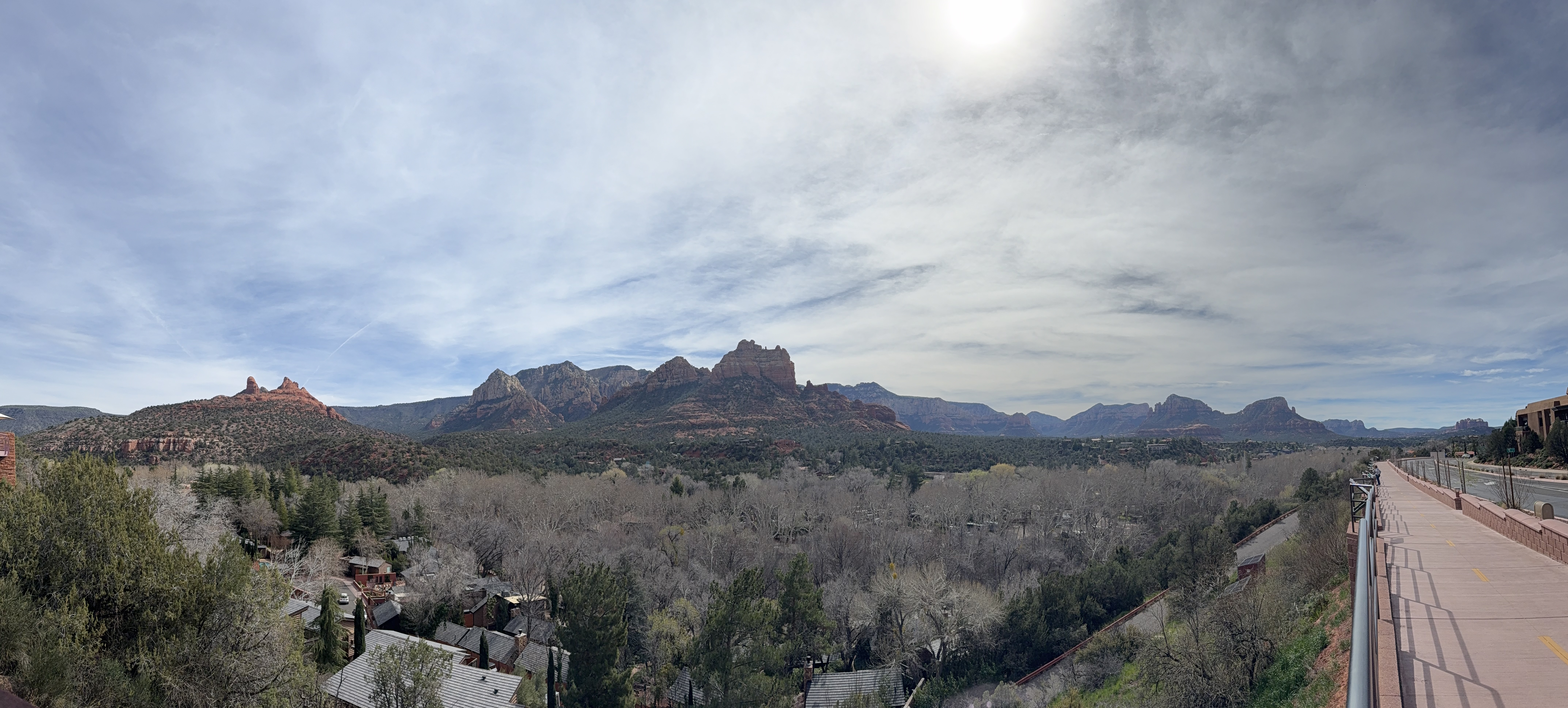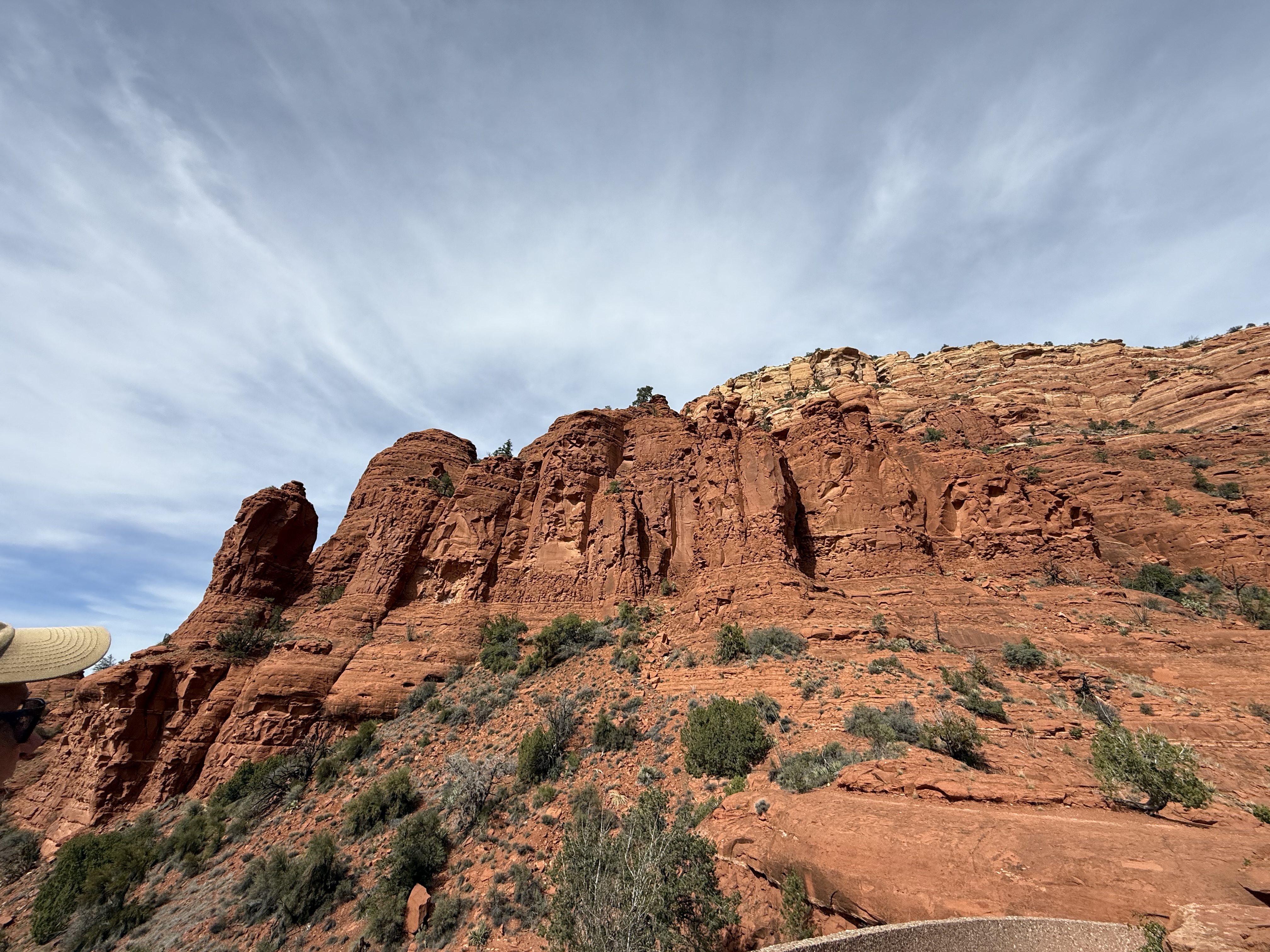 Mileage driven to date: Why do I keep thinking I’m tracking this??We drove south today to explore Sedona, AZ. We weren’t sure what to expect from Sedona, and what we discovered was that it is basically a giant tourist trap with overpriced shops and galleries. We did find one trinket that caught our eye — a hand carved candle. There were a lot of rock, gem and jewelry shops. Apparently in Sedona, crystals and their “mystical powers” are a big thing, and people visit “vortexes” to get their “spirits” aligned (or something like that). We had lunch at a restaurant that I didn’t get the name of, but had patio dining with a beautiful view of the mountains. The chicken chimichanga had a good portion of meat, making it very filling; and the cubano sandwich was also good. One of the gift shops we stopped in had a number of dinosaur fossils, including the spine plates from a stegosaurus, the teeth and claws of a T-Rex, and several megalodon teeth! These weren’t castings from the fossils, but the actual fossils themselves…and they were priced accordingly! They also had a small collection of meteorites. Apparently the couple who own the shop have numerous archaeological teams in their employ who are digging up / finding these treasures on their own private lands in Wyoming. I can only imagine how wealthy one must be to have such resources!