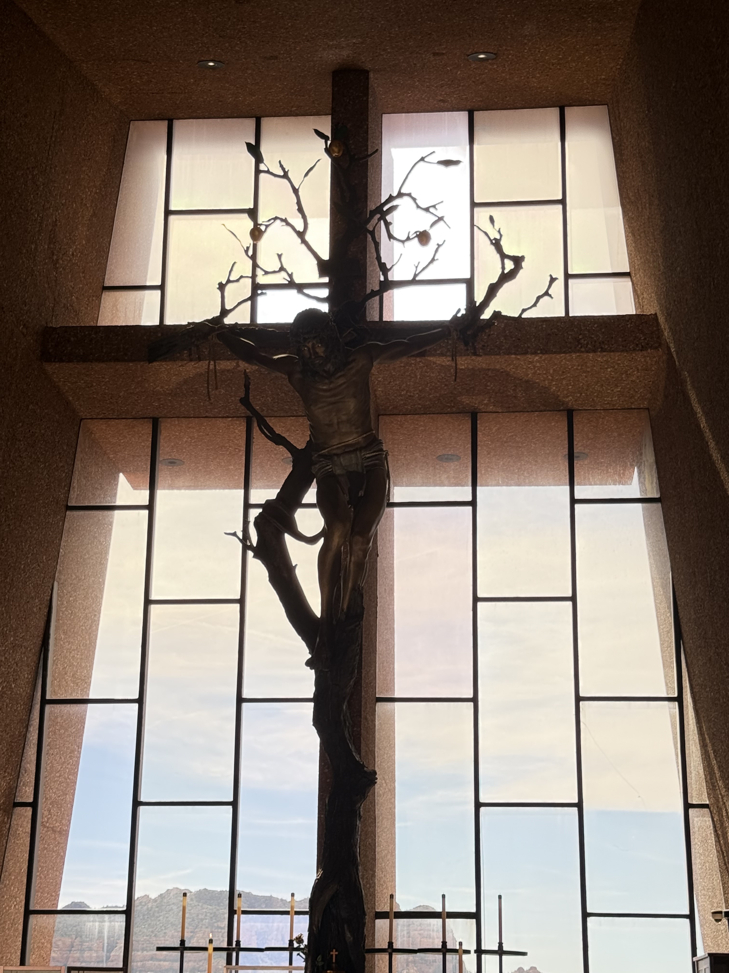 We made a stop at the Chapel of the Holy Cross. This beautiful chapel is built into the side of a hill, overlooking a residential neighborhood. This is an in-use chapel of the Catholic church, with vespers and prayer services held on a regular basis. Visitors are invited to light a candle (for a $1 fee) and stay for prayer in the small chapel that has an entire wall of windows with a floor to ceiling crucifix. It is a beautiful space of worship!